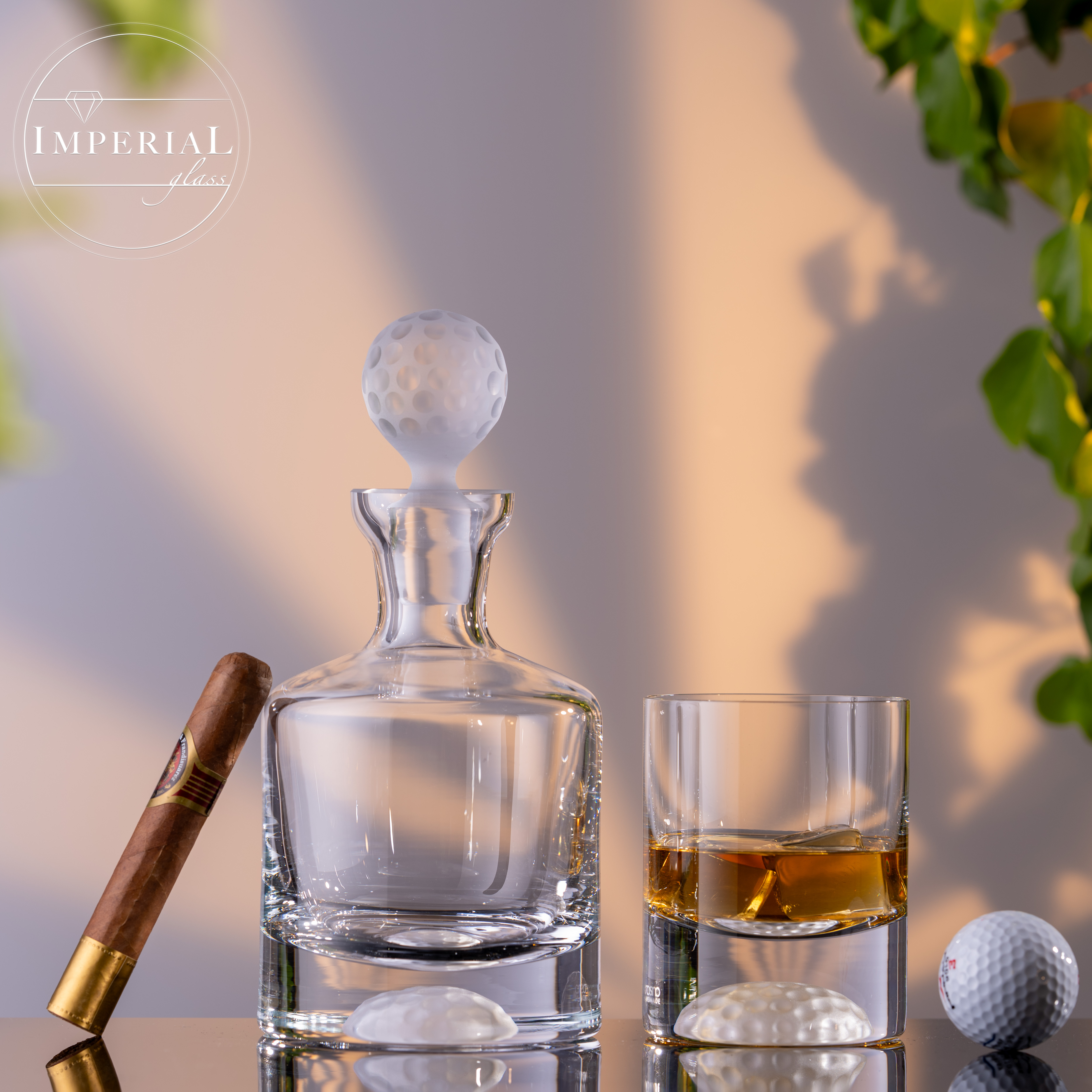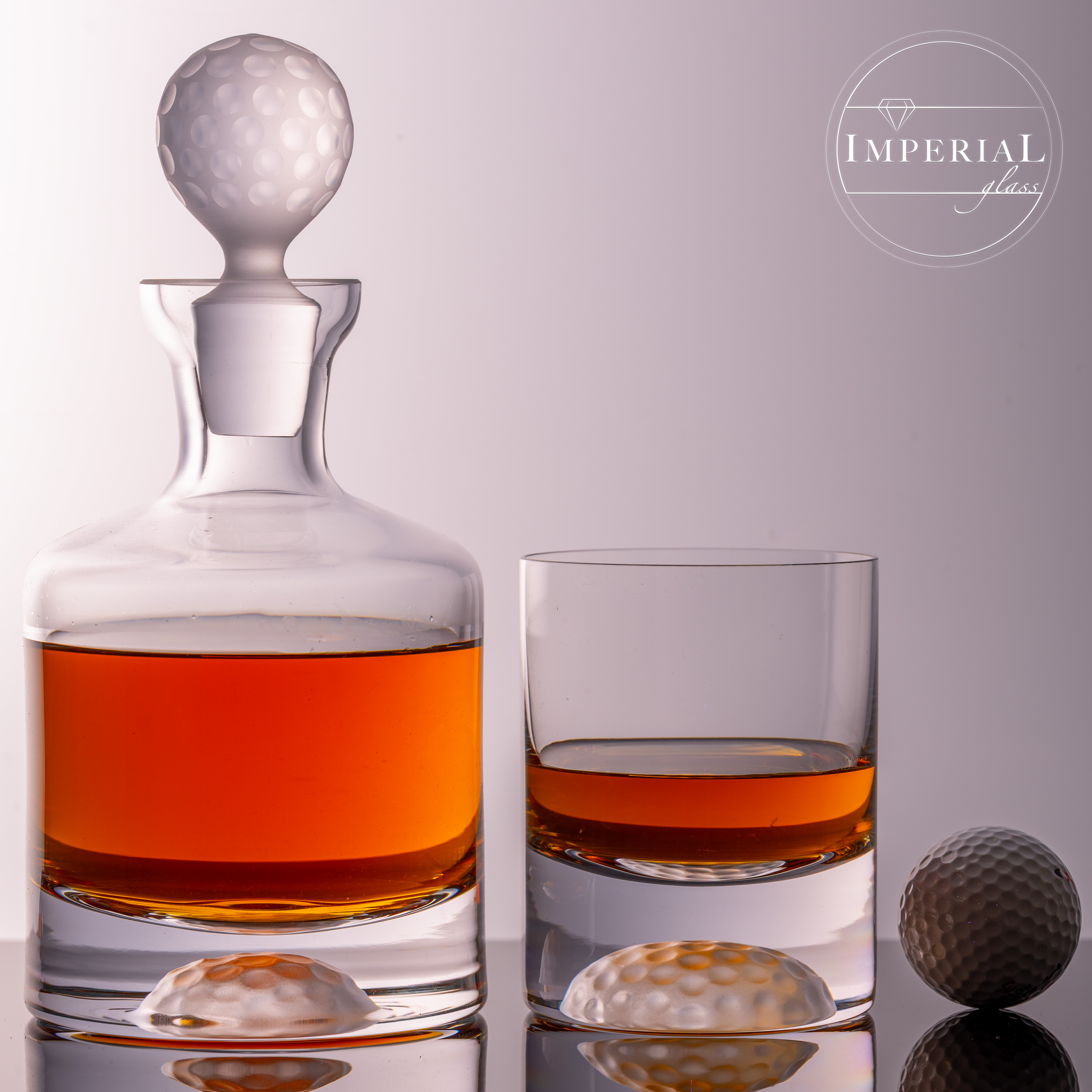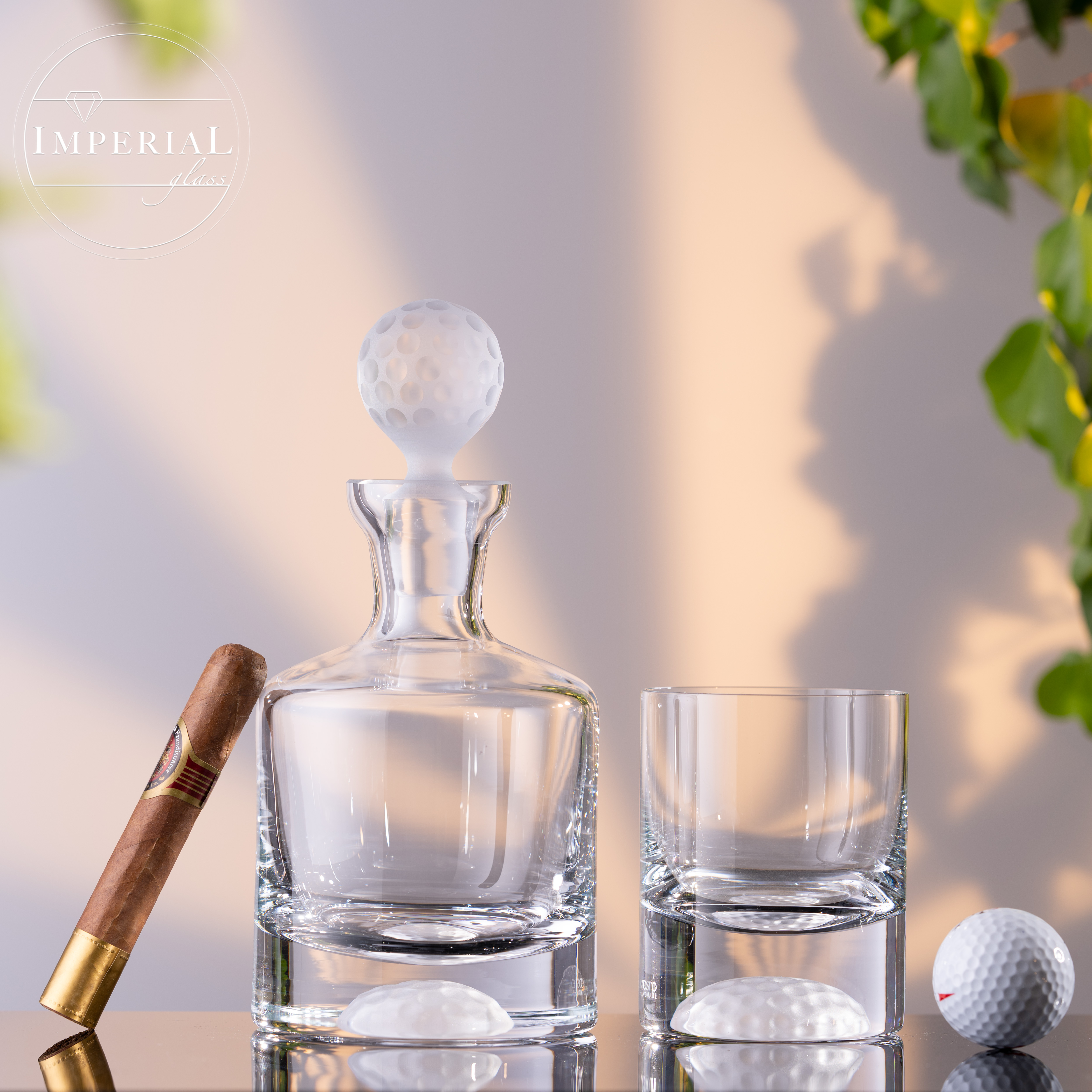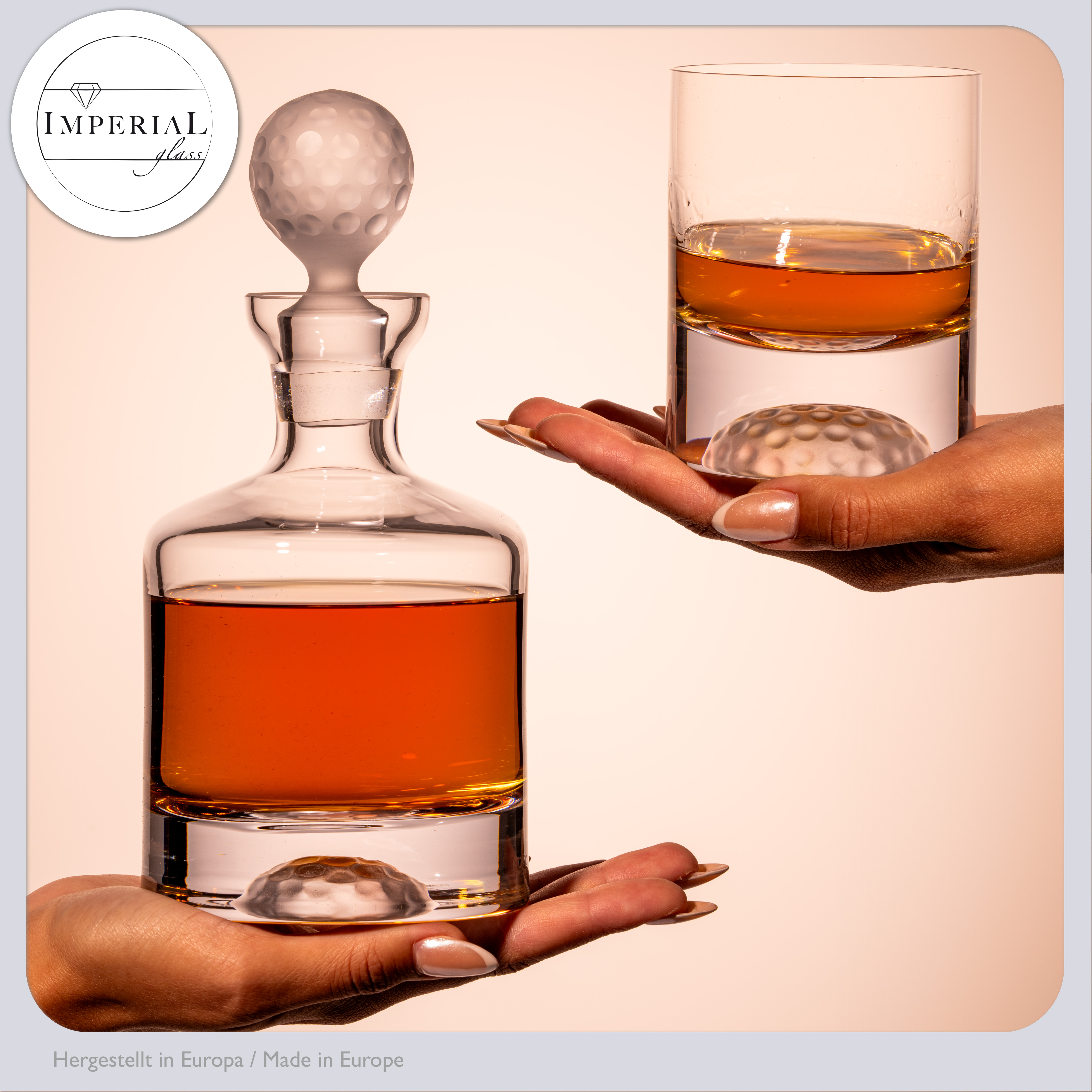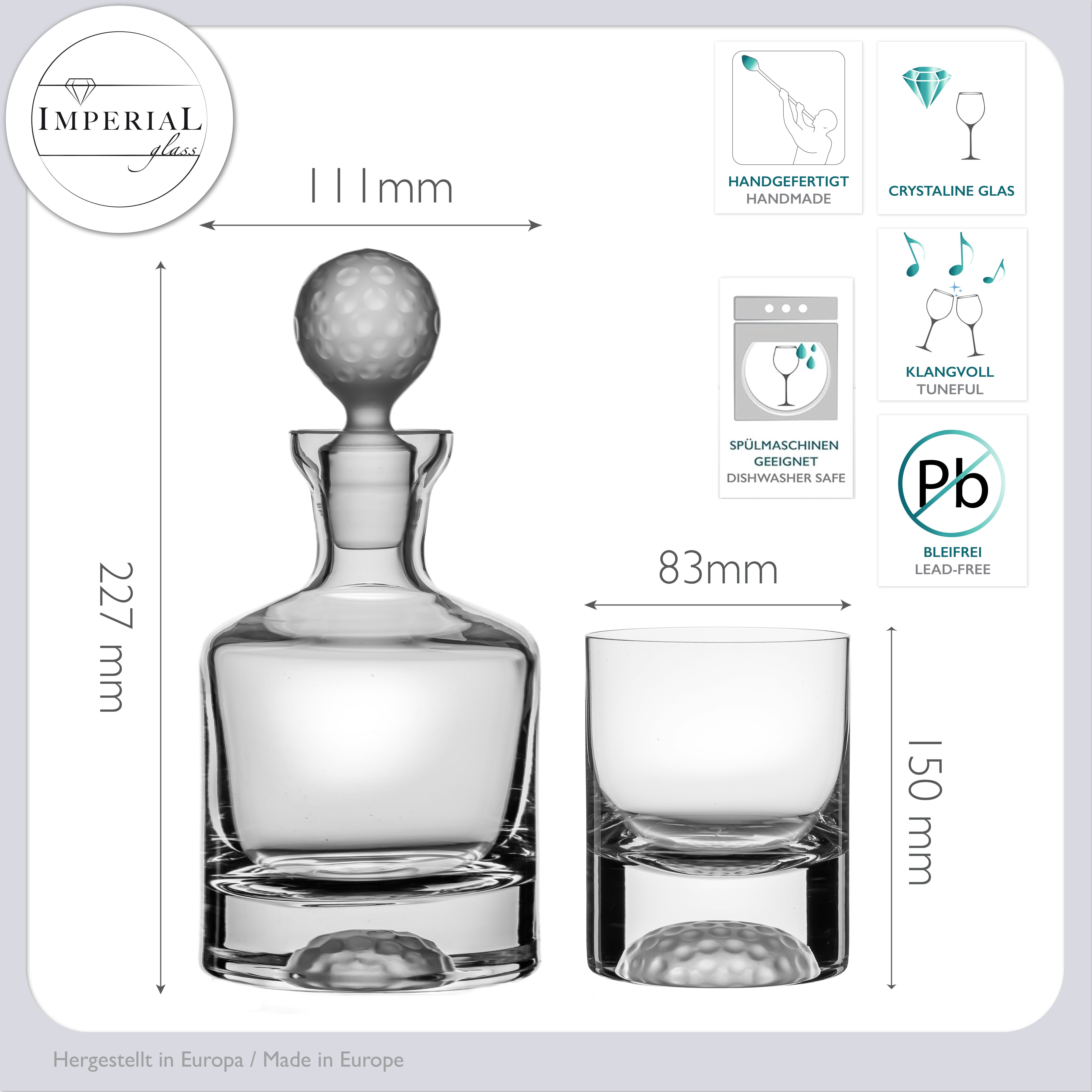 IMPERIAL Whisky Karaffe und Gläser Set – Crystalline Glas mit Golfball Design – handgefertigtes 5-teiliges Geschenkset für Golfer und Whiskey Liebhaber mit Geschenkverpackung