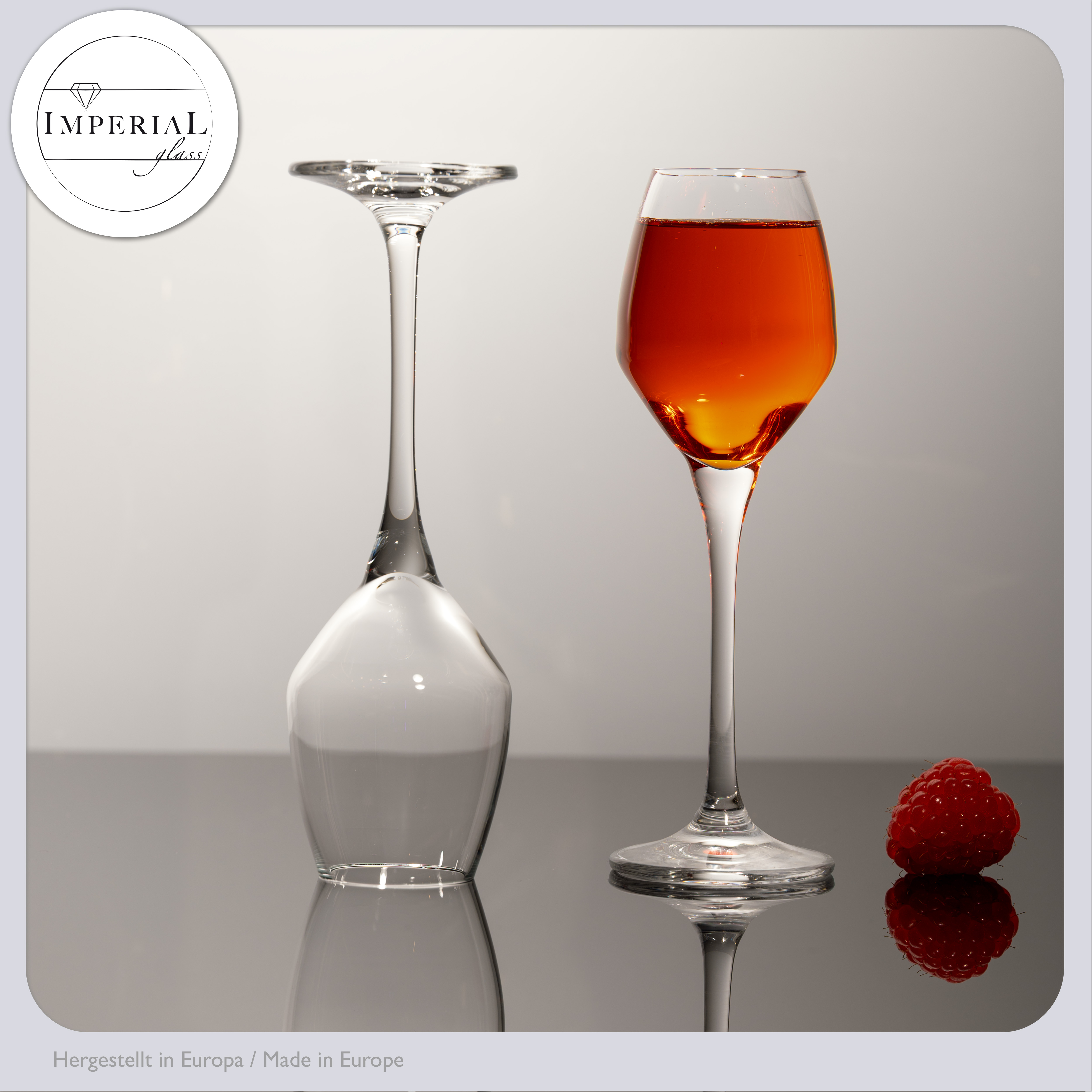 Die Likörgläser aus der IMPERIAL Kollektion Rom verbinden eine elegante Formensprache mit hochwertigem Crystalline Glas. Die hochgezogene Silhouette, der schlanke Stiel und der leicht bauchige Kelch erzeugen eine harmonische Balance, die Aromen gezielt bündelt und Spirituosen klar zur Geltung bringt.