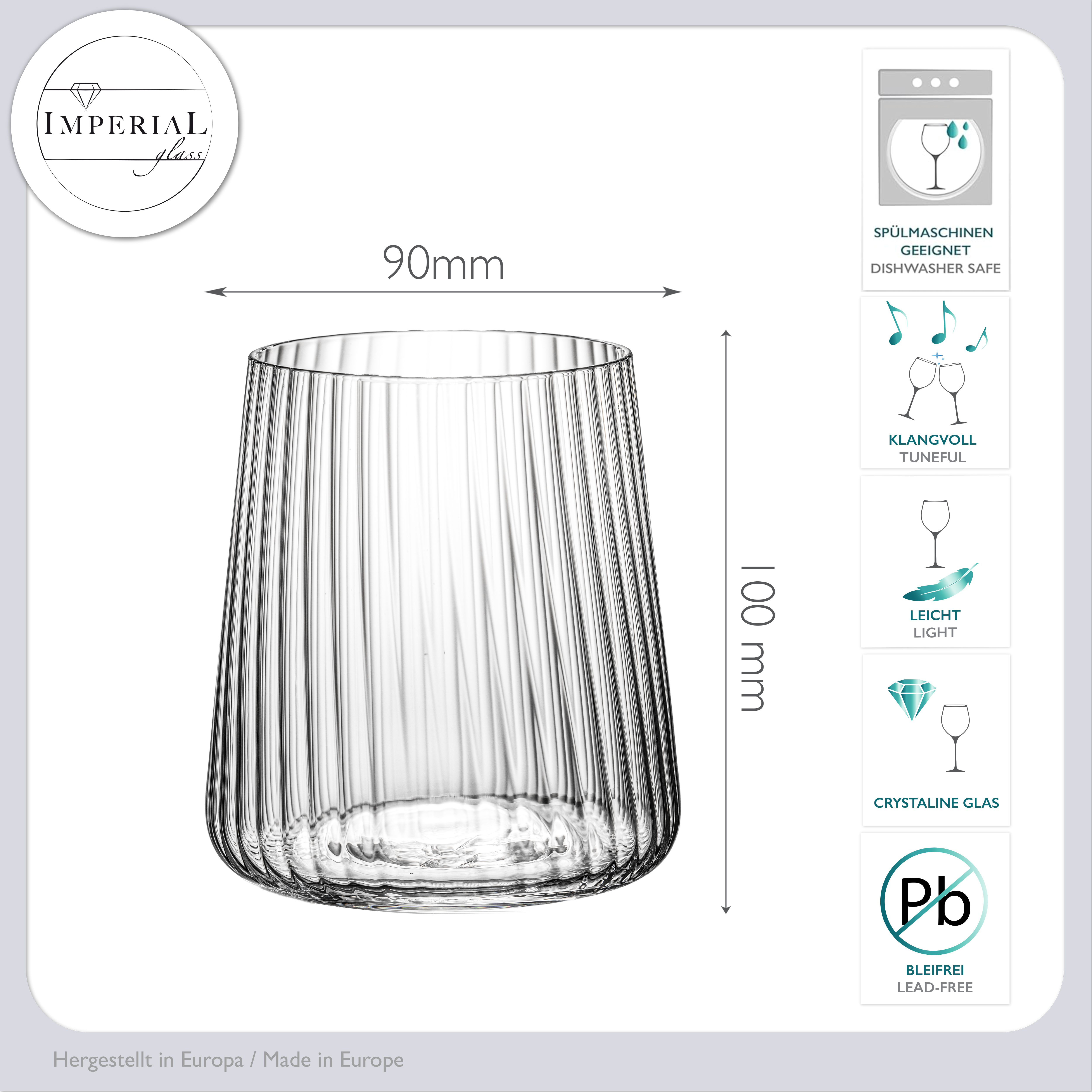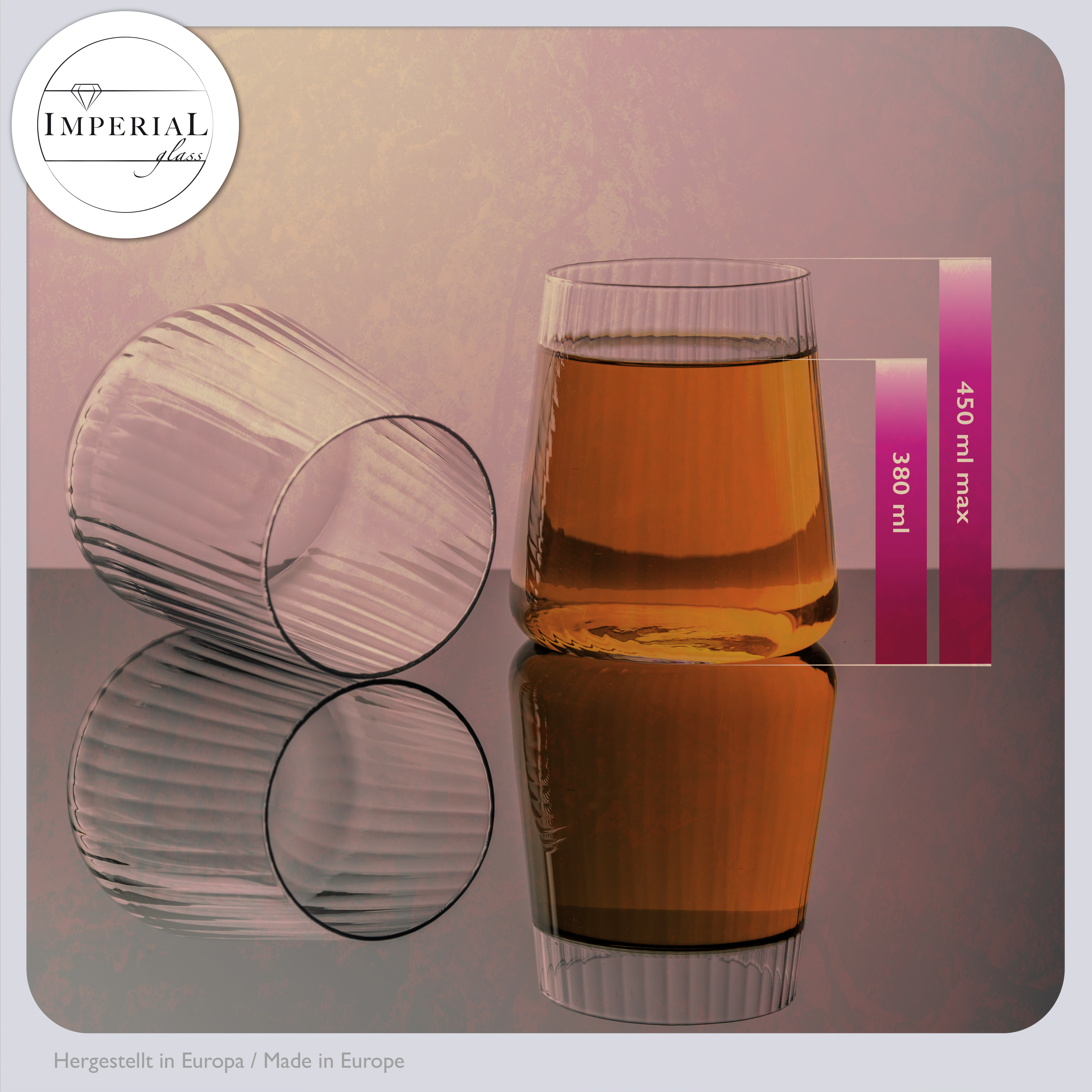 IMPERIAL geriffelte Trinkgläser 6er Set 450ml aus Crystalline Glas "London" Spülmaschinenfest