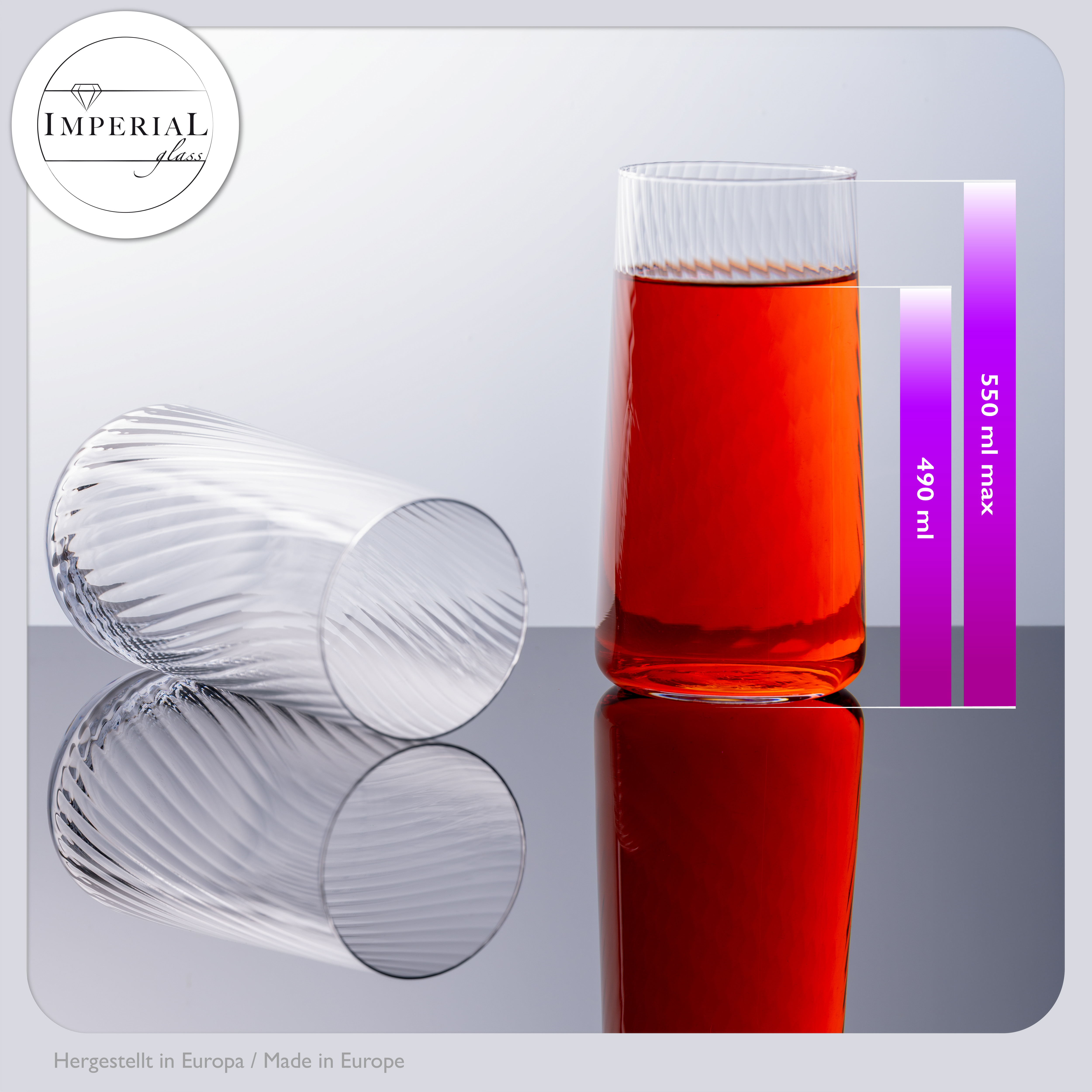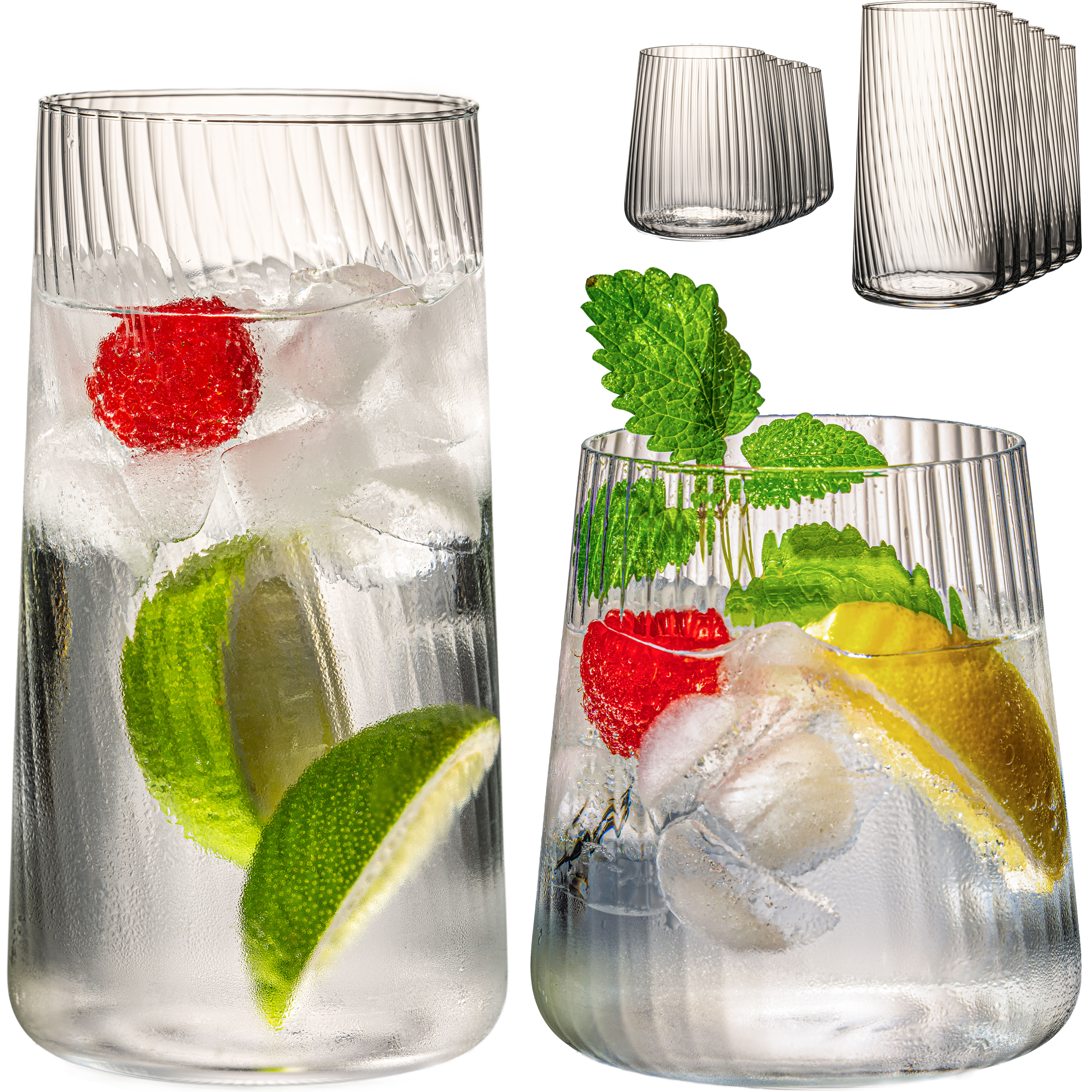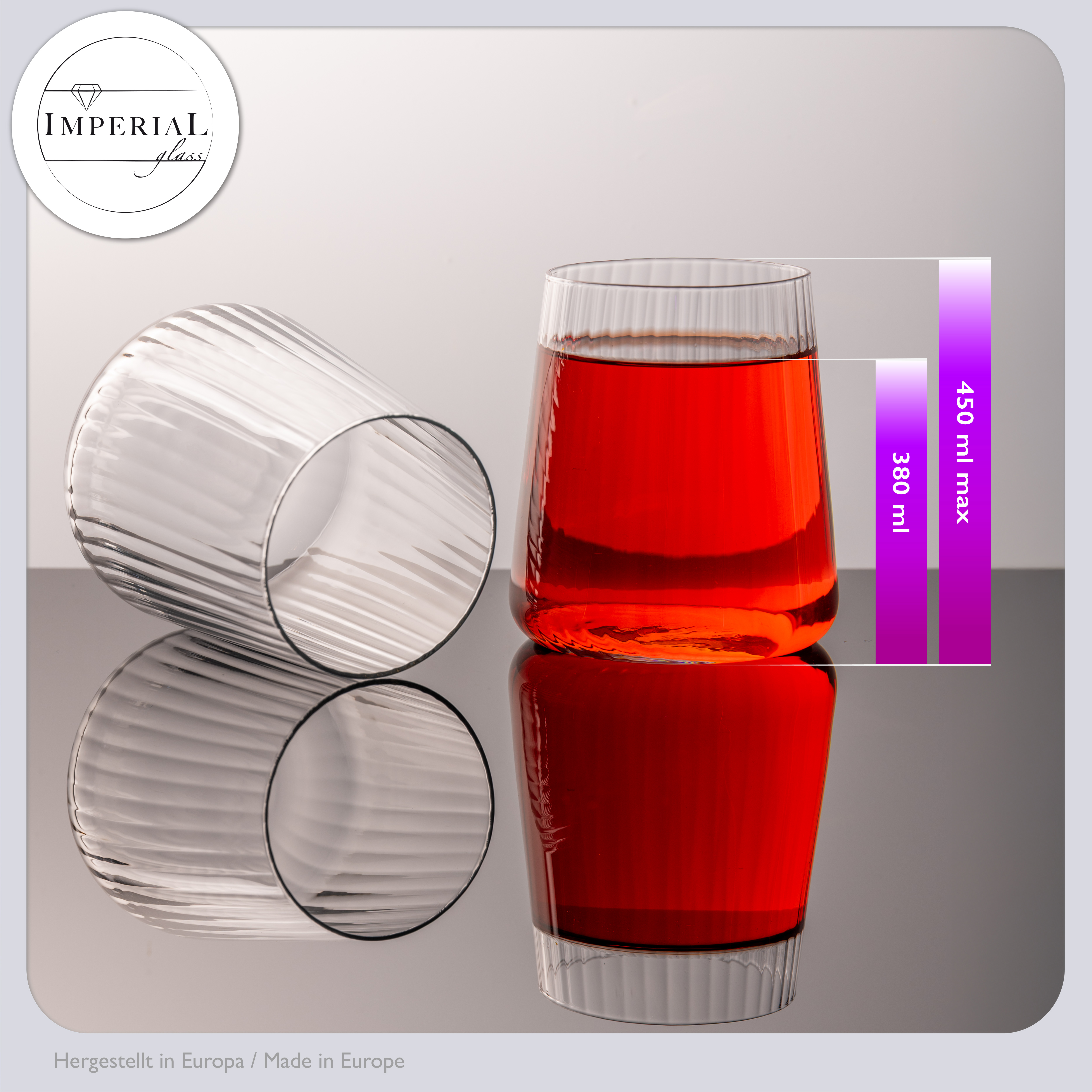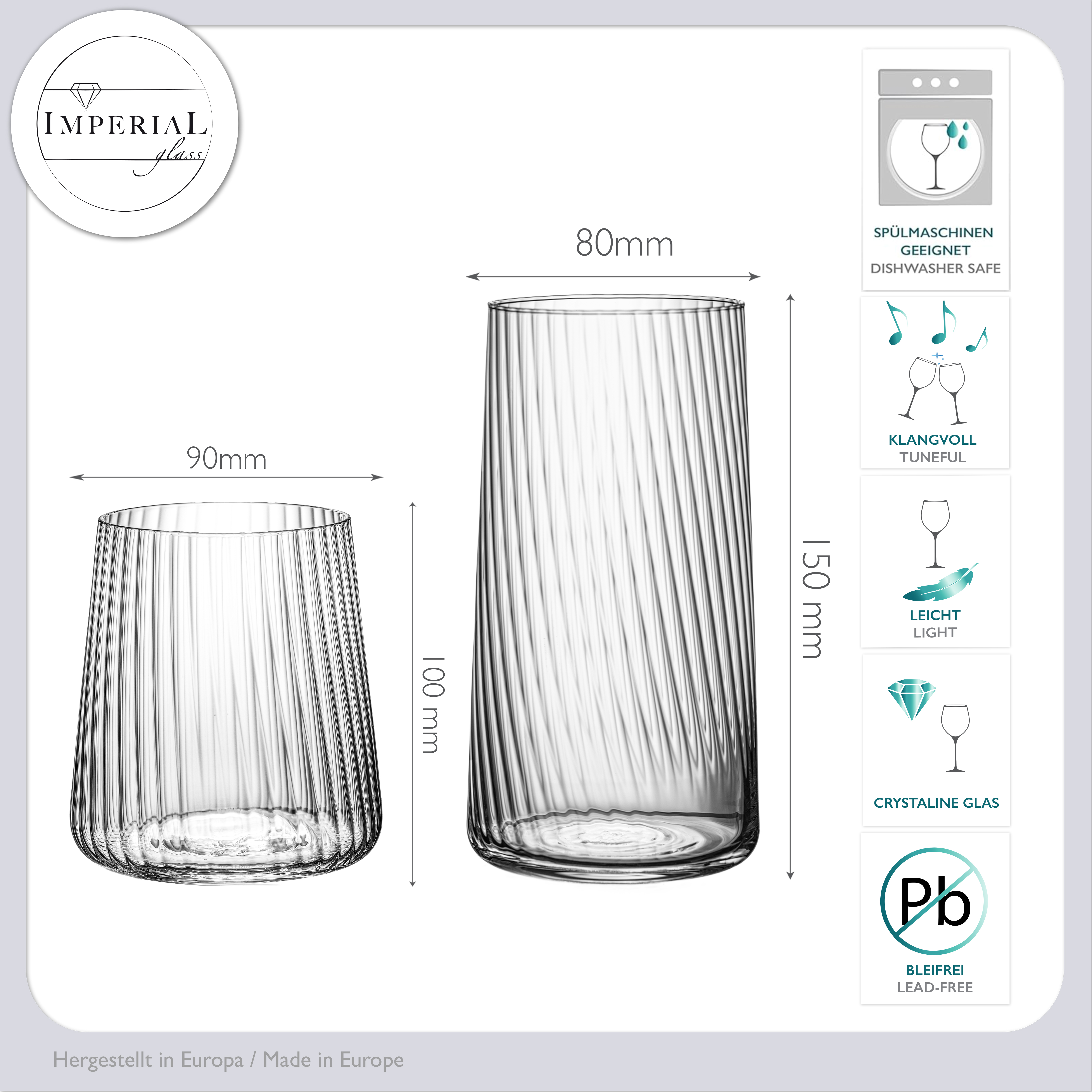 IMPERIAL geriffelte Trinkgläser Set 550ml & 450ml 12-teilig aus Crystalline Glas "London" Spülmaschinenfest