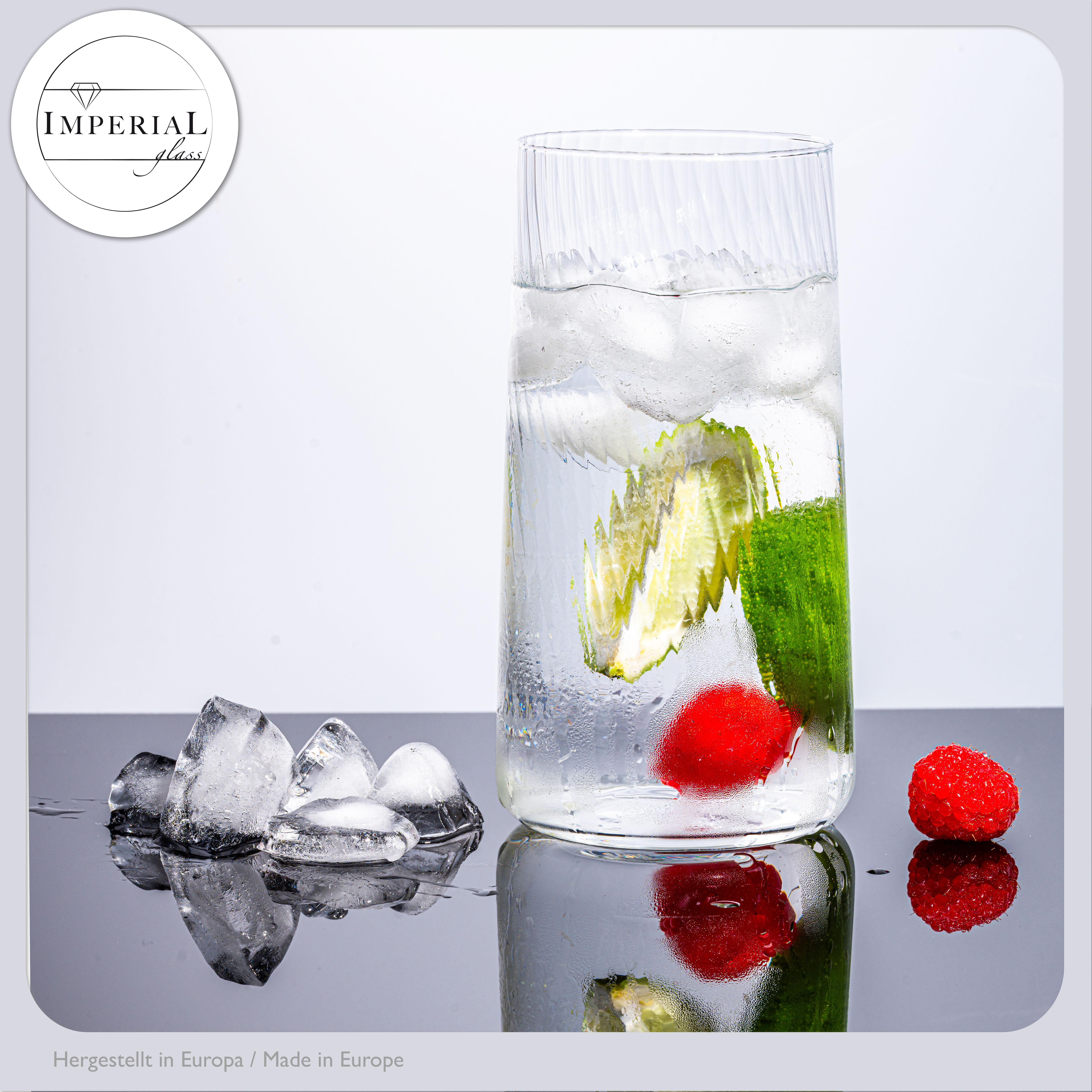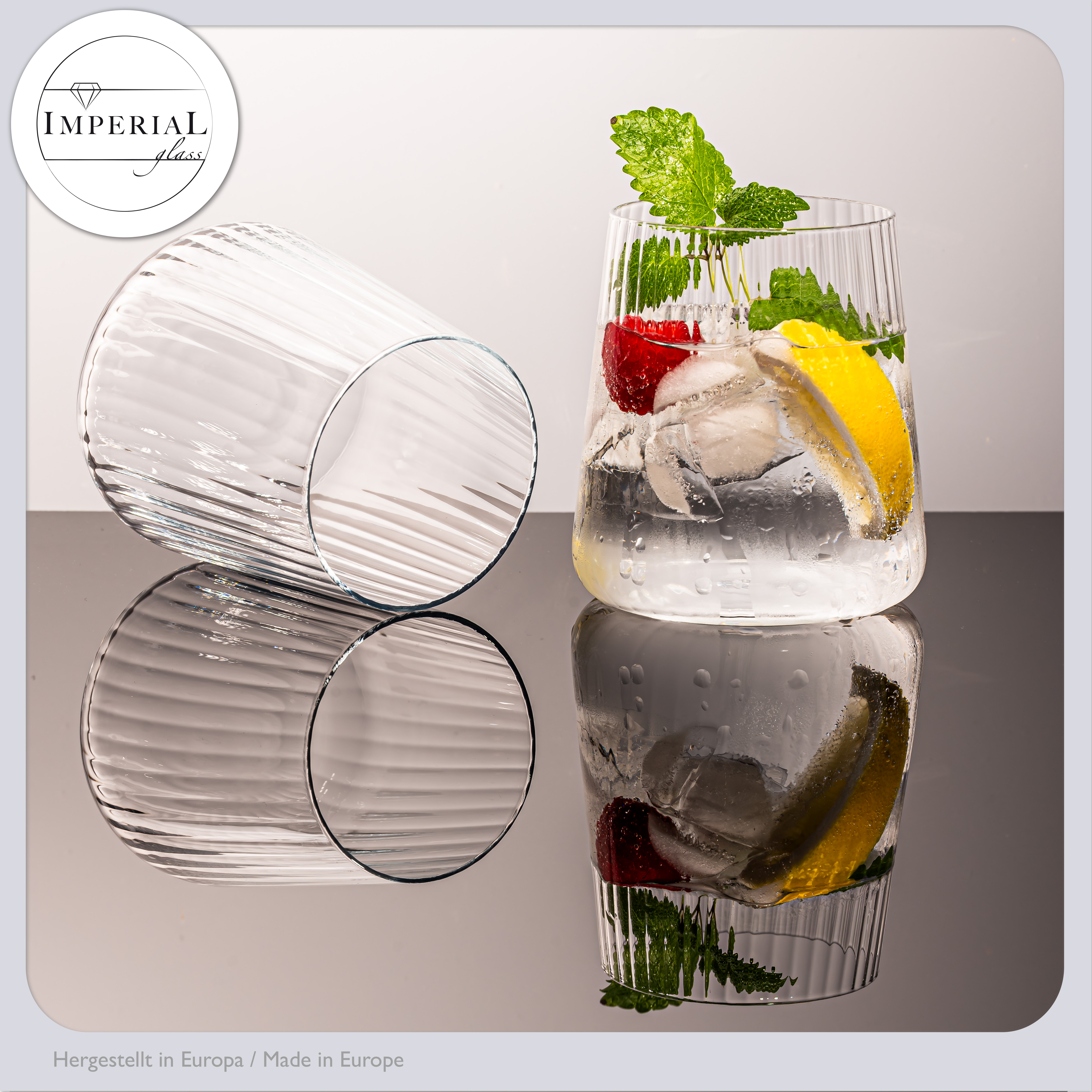 Das 12-teilige IMPERIAL Trinkgläser Set „London“ kombiniert modernes Design mit handwerklicher Präzision. Zwei Glasgrößen – sechs niedrige und sechs hohe Gläser – decken alle Getränkesituationen ab, vom erfrischenden Wasser bis zum eleganten Longdrink.