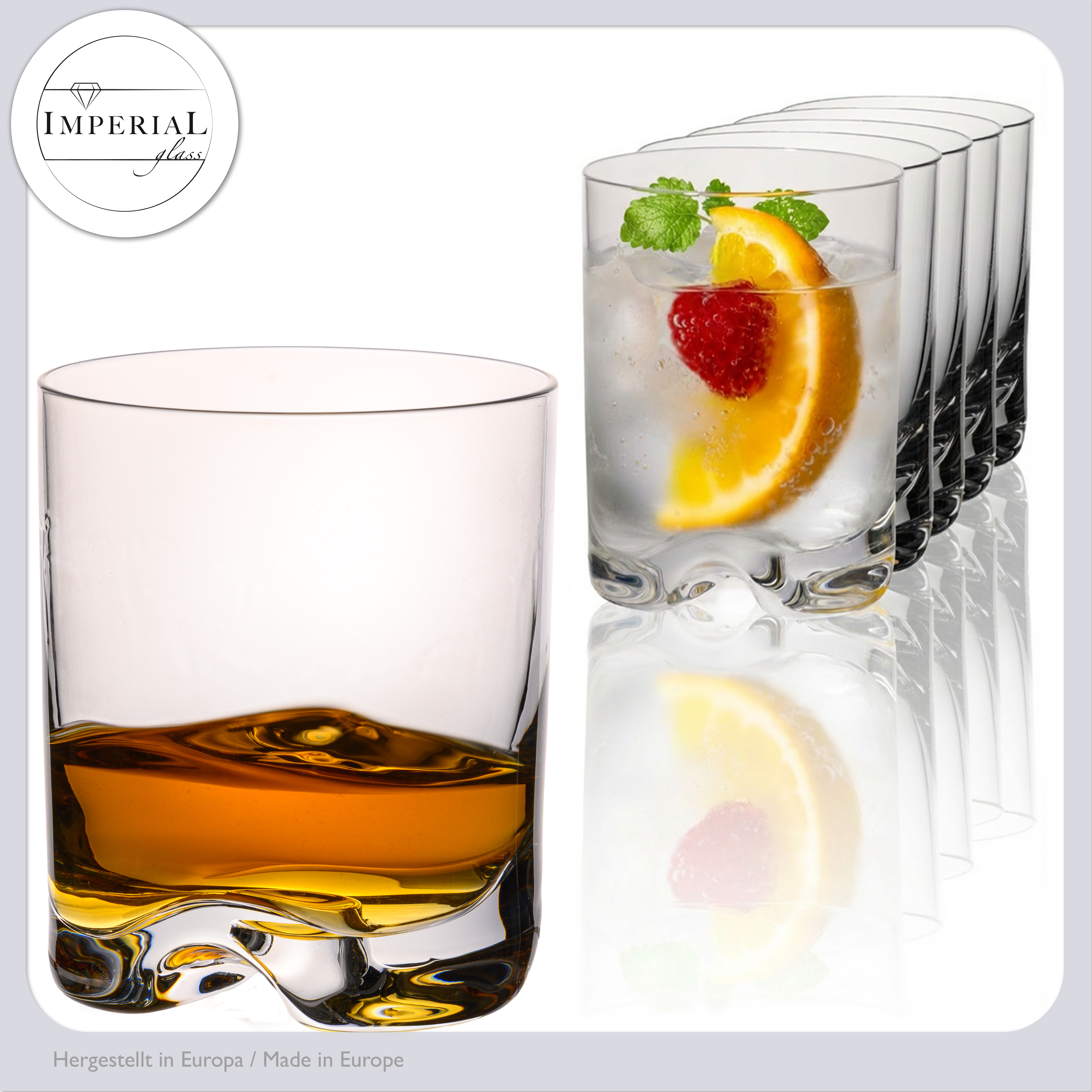 IMPERIAL glass Trinkgläser 2er Set 370ml - Whiskeygläser aus bleifreiem Crystalline Glas mit gewelltem Boden