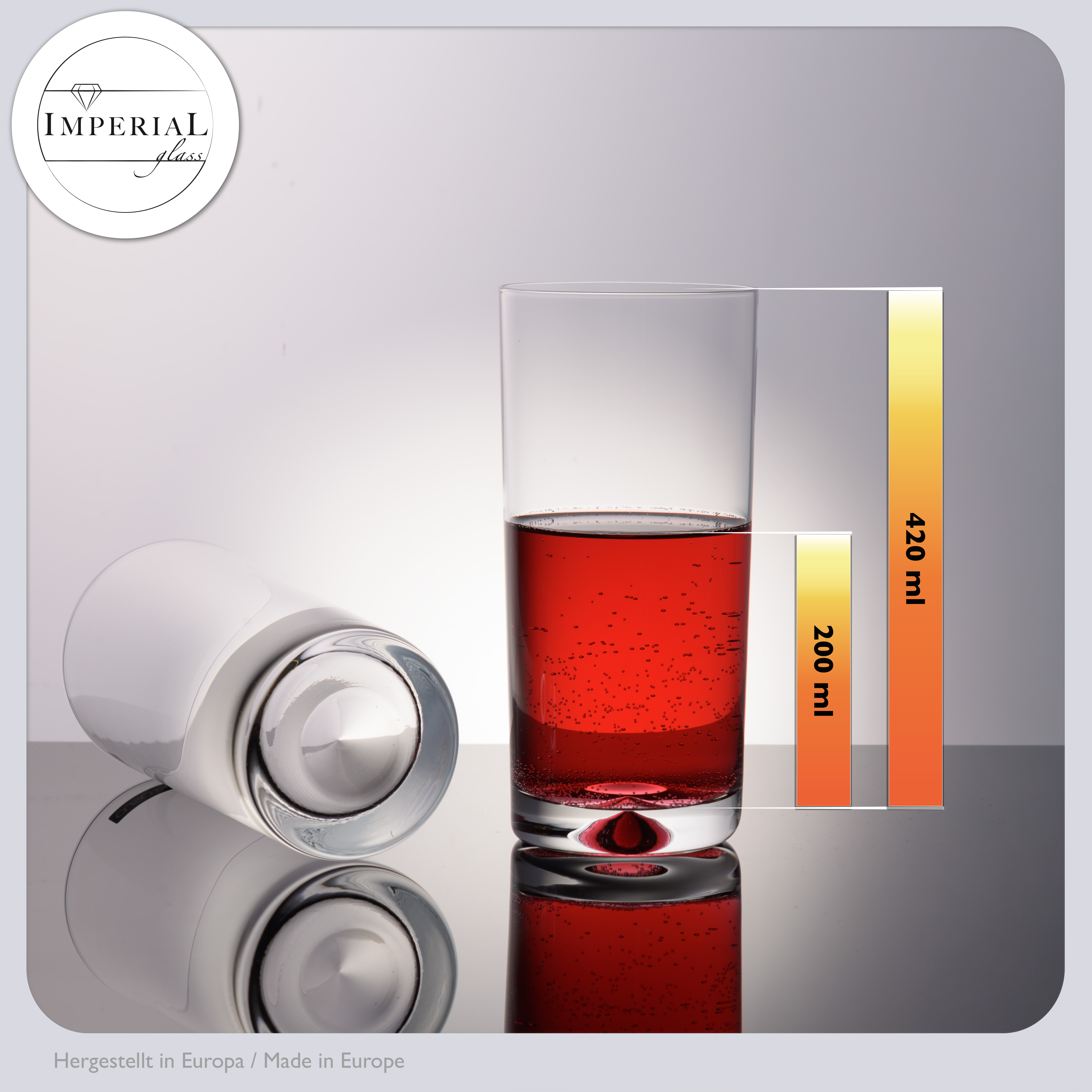 IMPERIAL glass Trinkgläser 6er Set 420ml spülmaschinenfest aus bleifreiem Crystalline Glas mit Design Boden