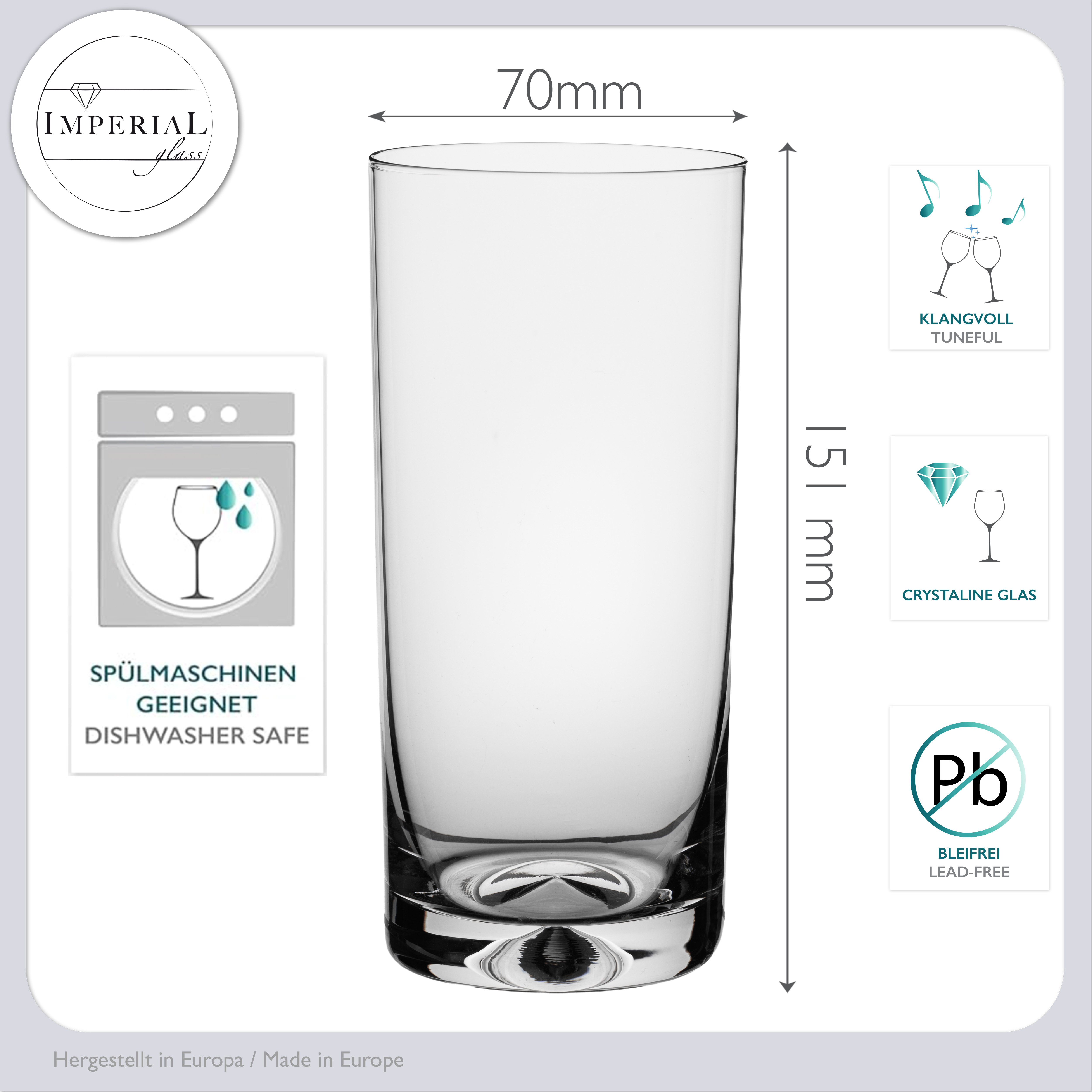 - Gefertigt aus bleifreiem Crystalline Glas mit klarer Brillanz sorgen die Highball Gläser für eine transparente Optik; die glatte Oberfläche ohne Schliff unterstreicht das schlichte Design und passt zu modernen sowie klassischen Tischkonzepten