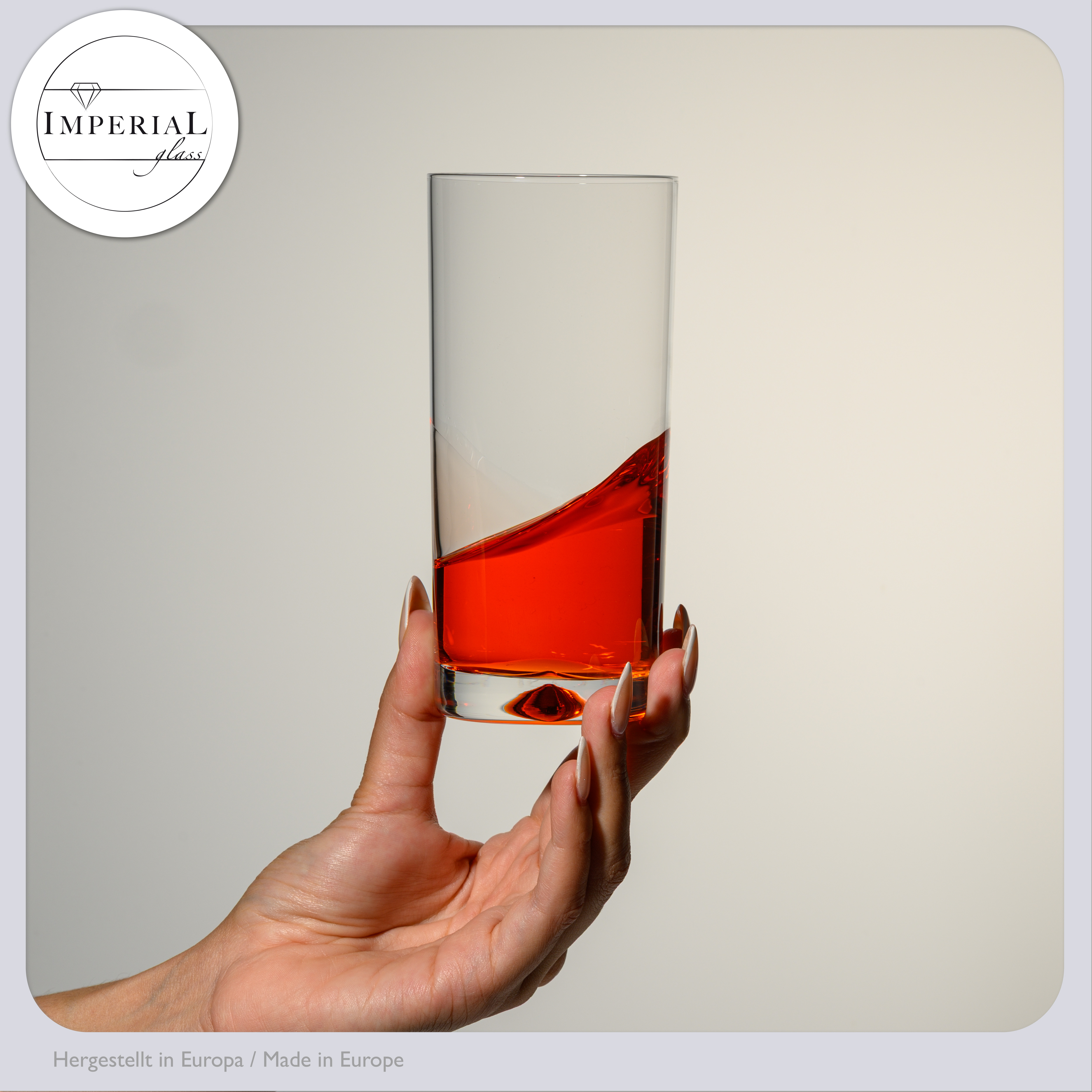 - Der geformte Glasboden mit optischem Bodenring und leichter Bodenmulde bietet stabilen Stand und angenehme Haptik; geeignet als Wasserglas, Saftglas, Longdrinkglas oder als als allgemeines Trinkglas für Softdrinks, Cocktails oder Schorle im Alltag sowie im Einsatz in Gastronomie oder Büro