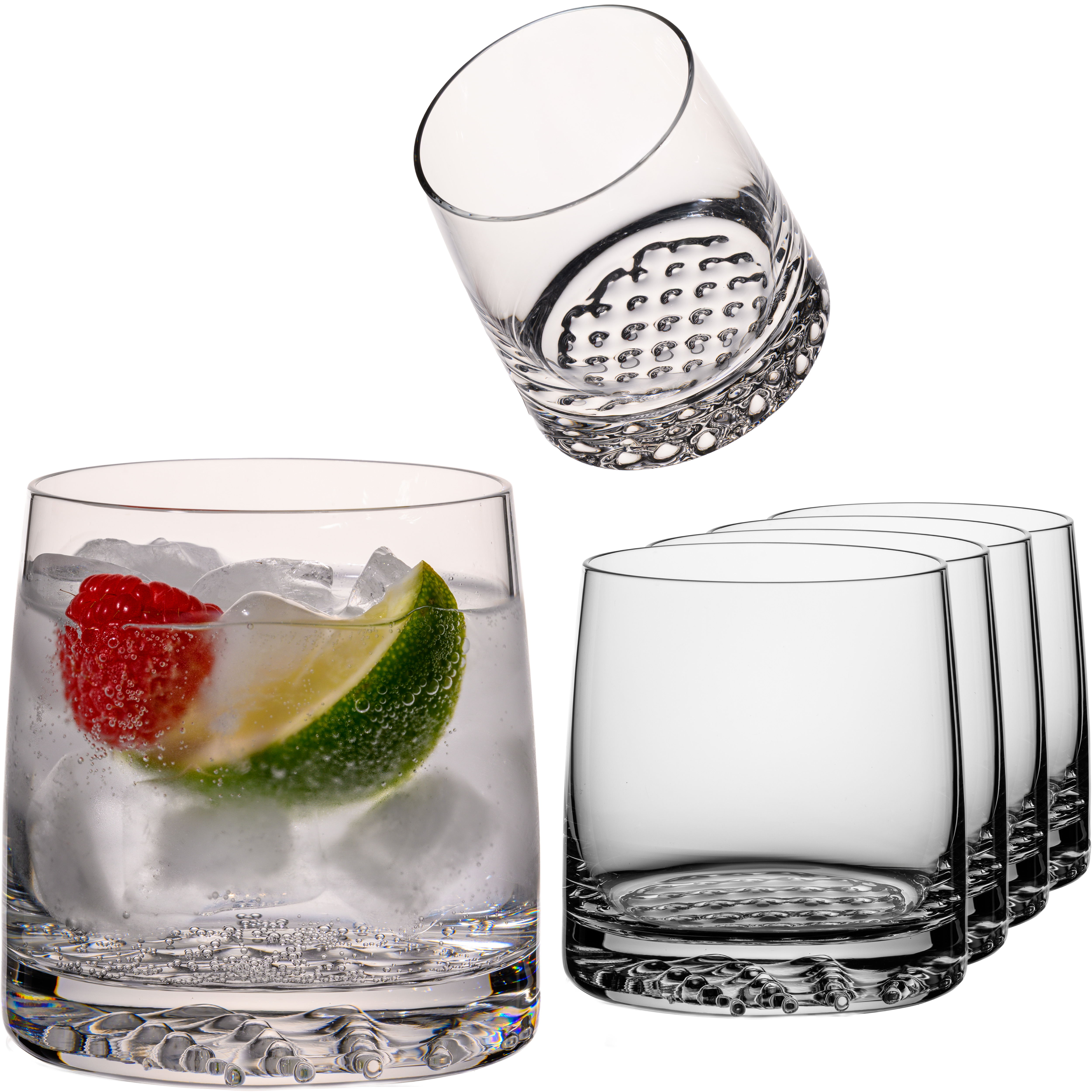 - Charakterstarker Look dank dickem, schwerem und strukturiertem Boden mit Noppenmuster setzt Getränke in Szene, während der runde und dünne Mundrand für ein angenehmes Trinkerlebnis sorgen.