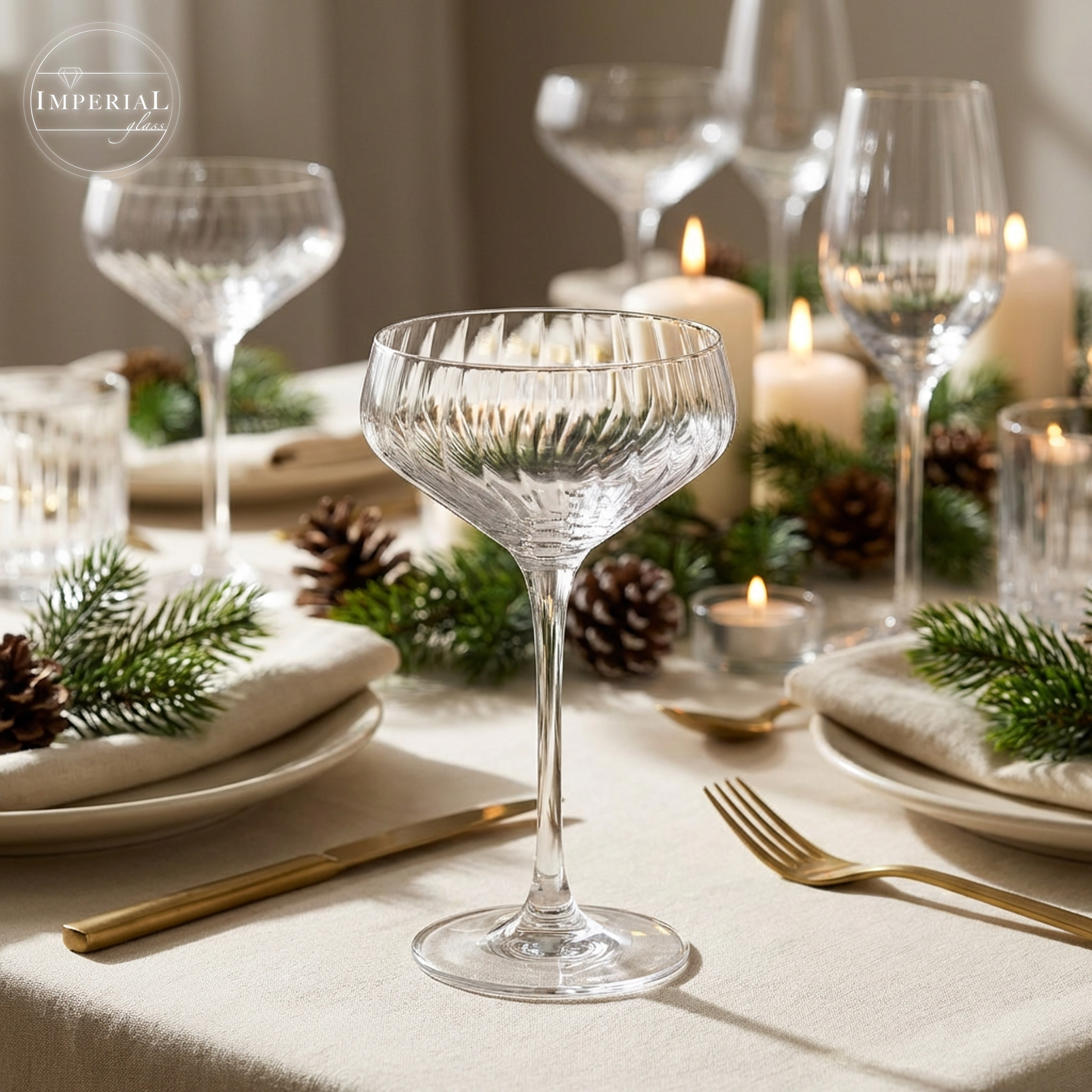 - Stilvolle Struktur: Geriffelte Glasoberfläche mit Reliefmuster sorgt für besondere Lichtreflexionen; moderne Coupe-Form vereint Ästhetik und Funktionalität in Bars, Restaurants und Zuhause.