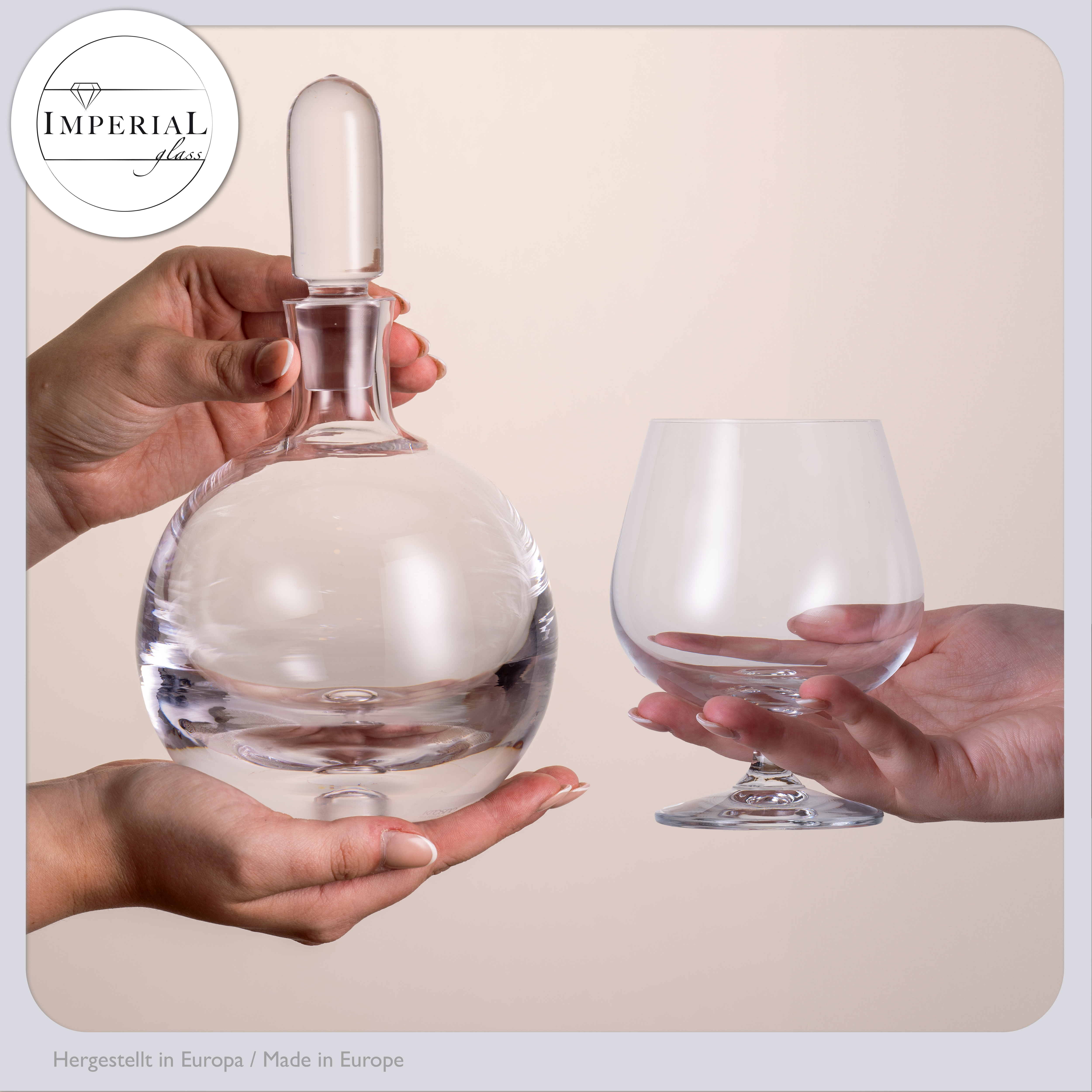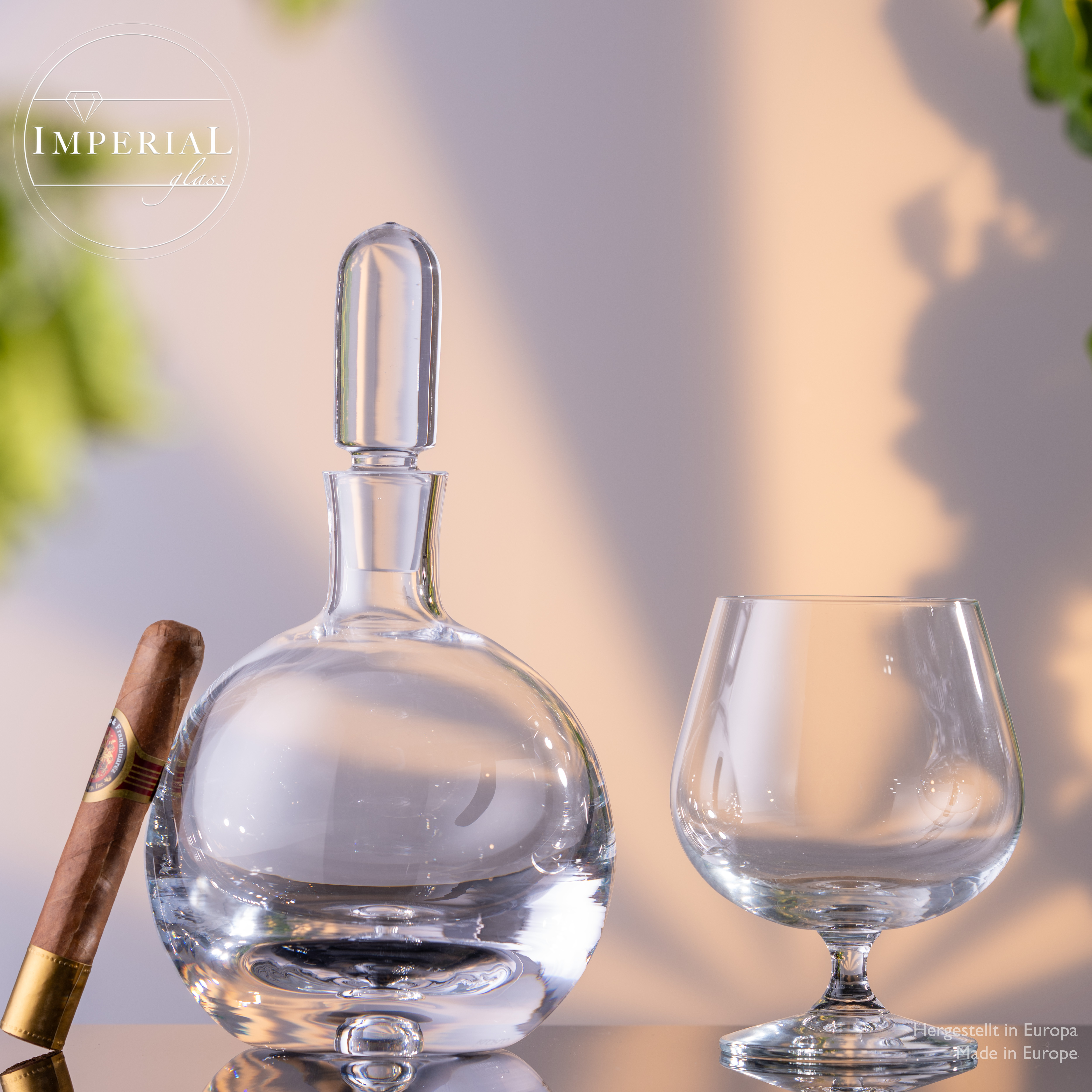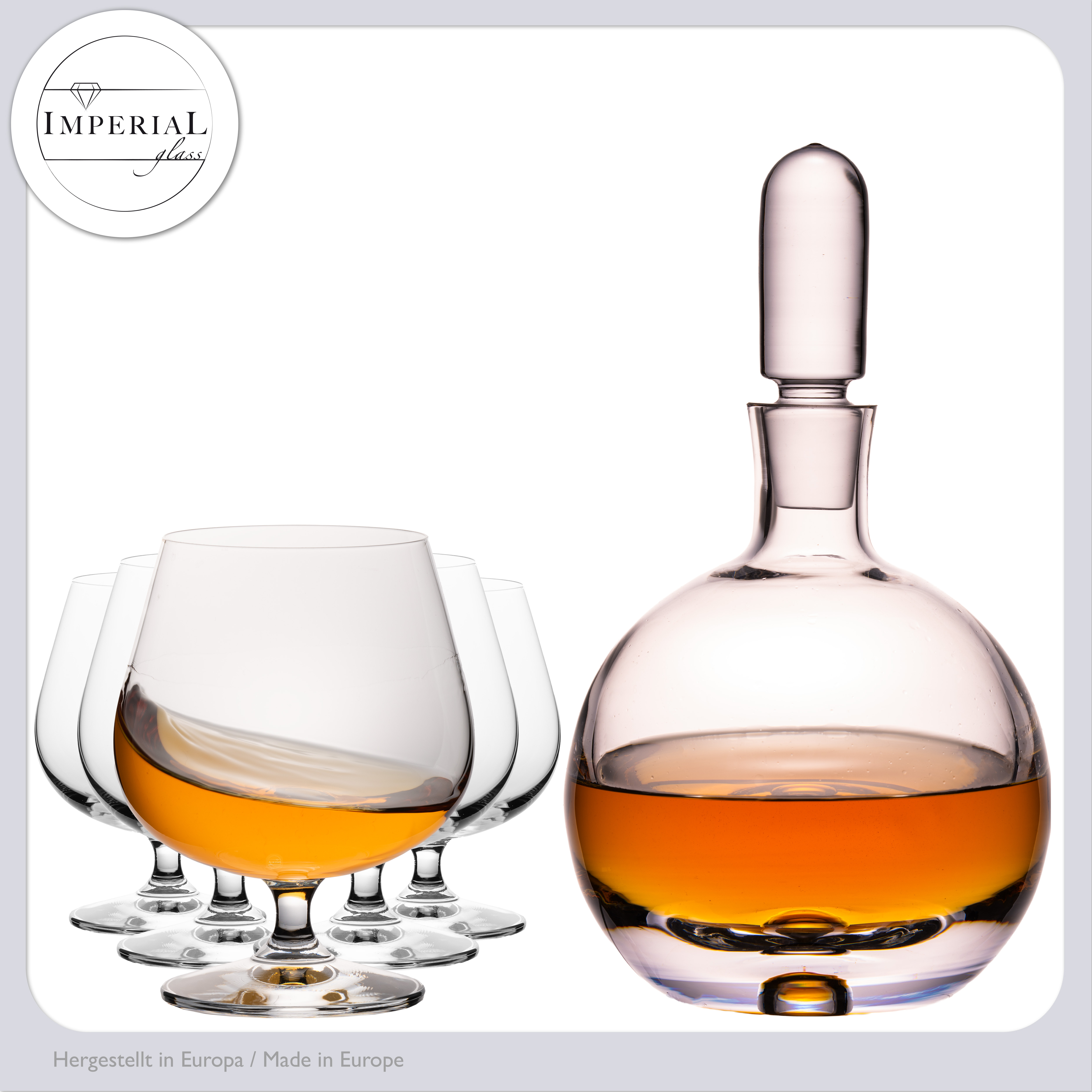 IMPERIAL Cognackaraffe mit Glasstopfen und 6 Cognacgläsern – aus Crystalline Glas Handmade