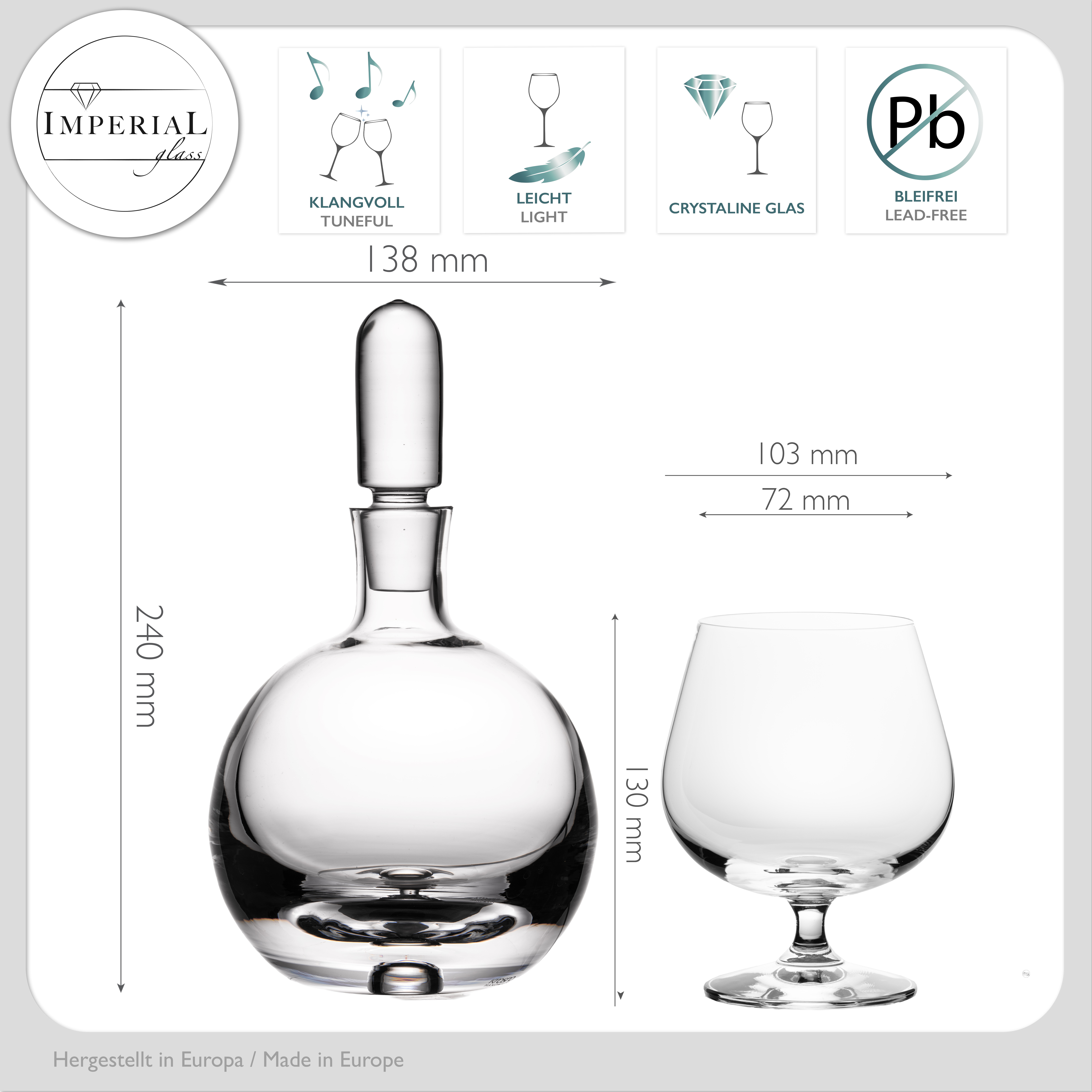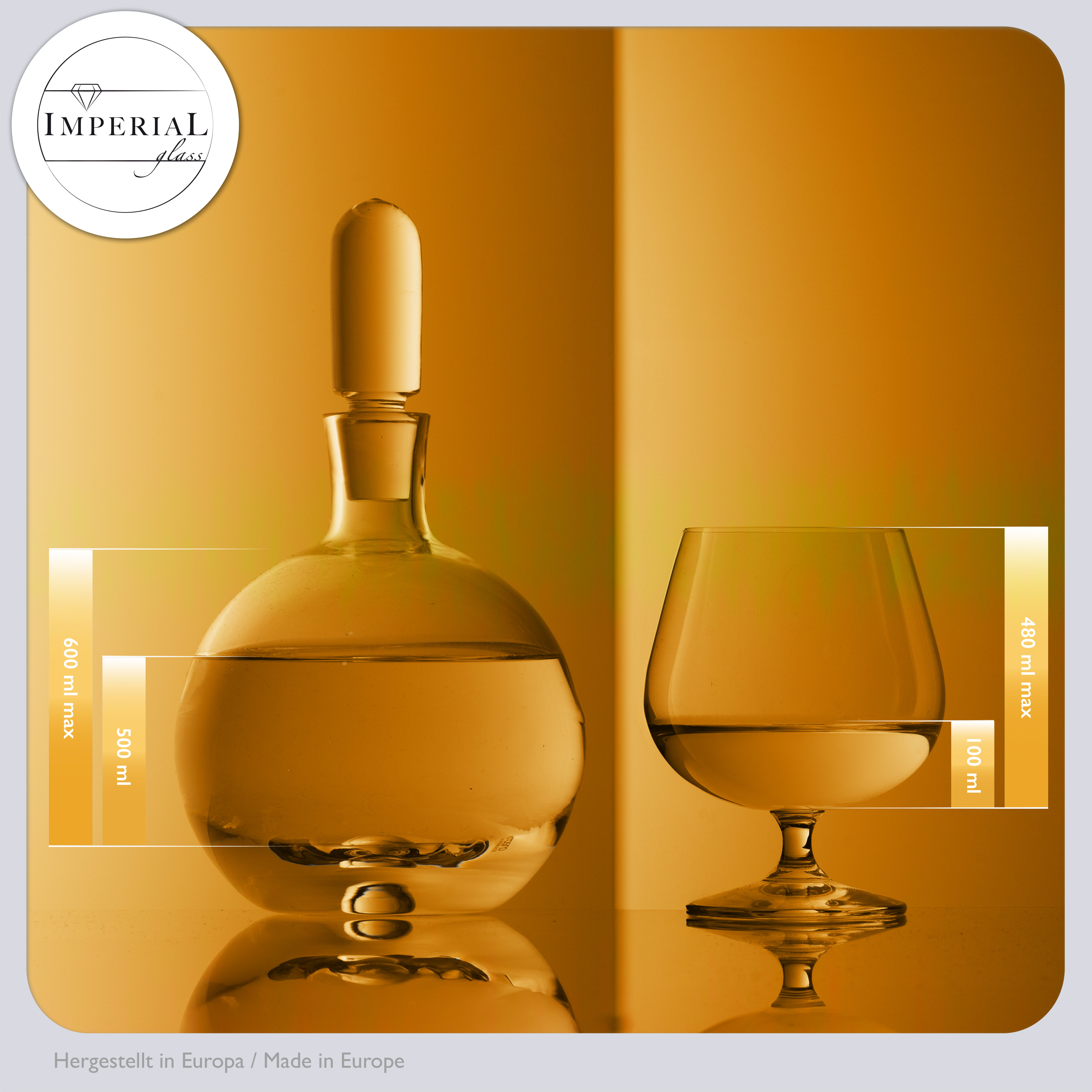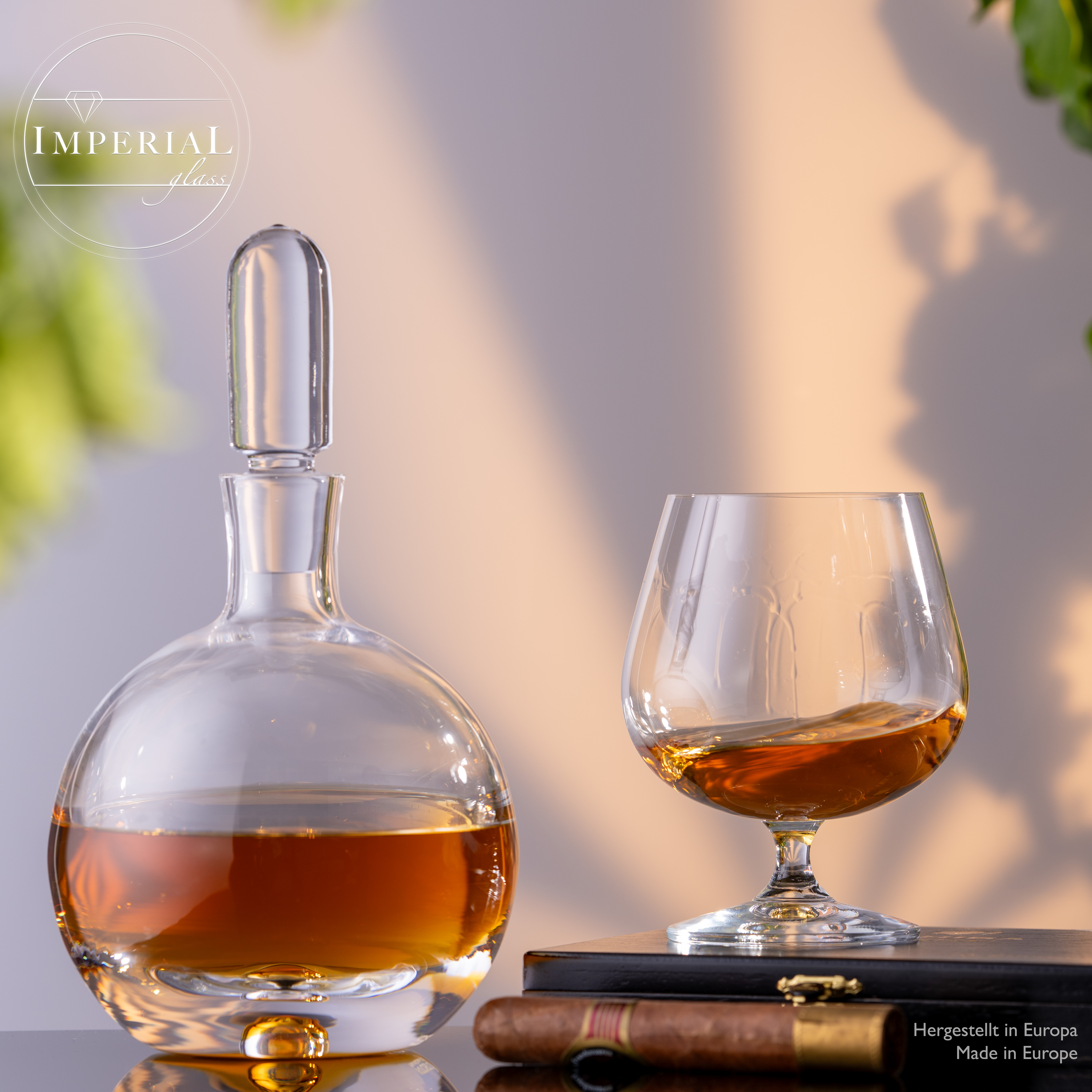 IMPERIAL Cognackaraffe mit Glasstopfen und 6 Cognacgläsern – aus Crystalline Glas Handmade