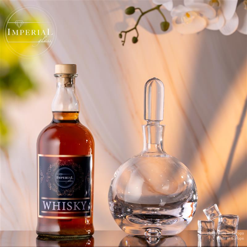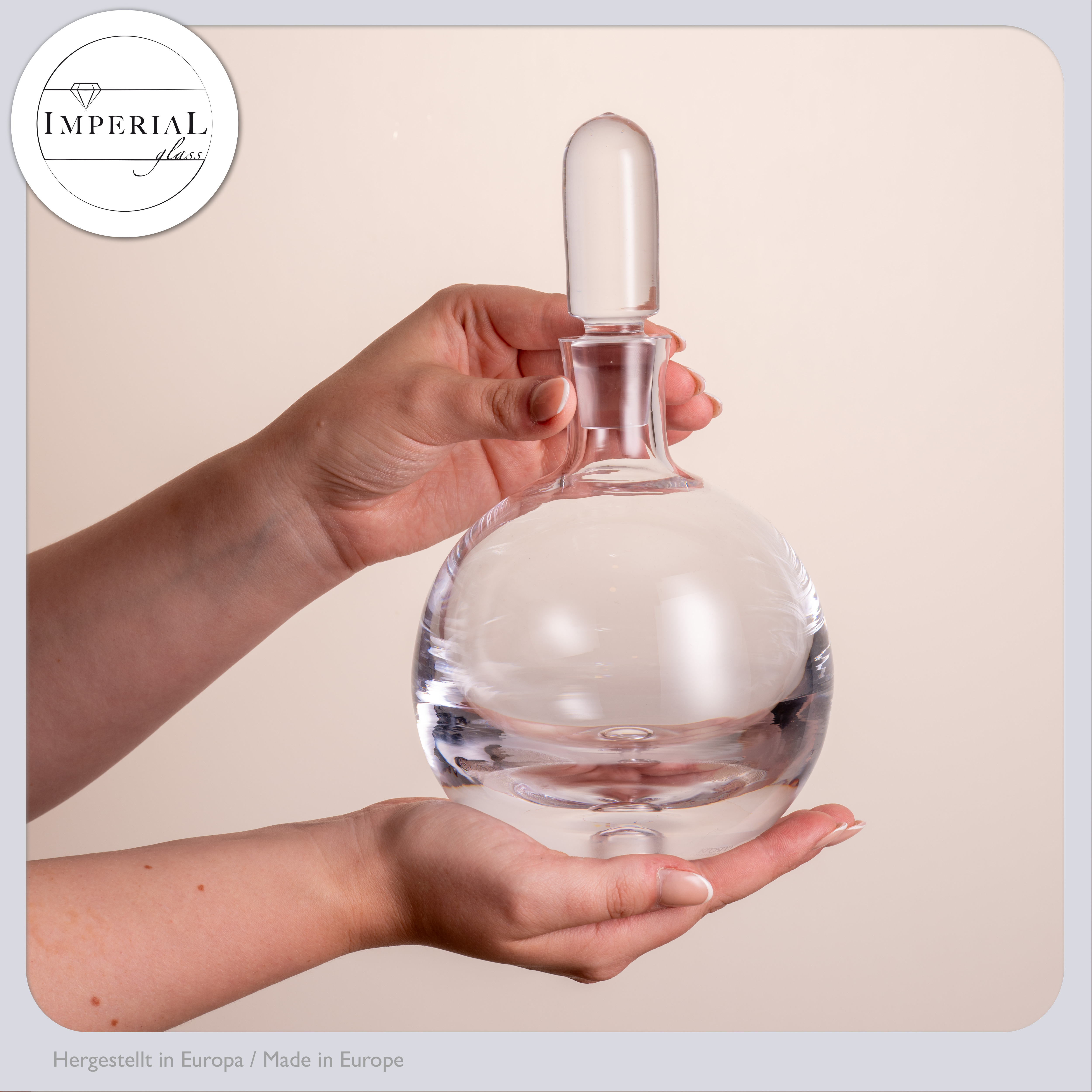 IMPERIAL Likörkaraffe aus Crystalline Glas 600ml kugelförmige Spirituosen Karaffe mit Glasstopfen und Luftblase im Boden Handmade "Lissabon"