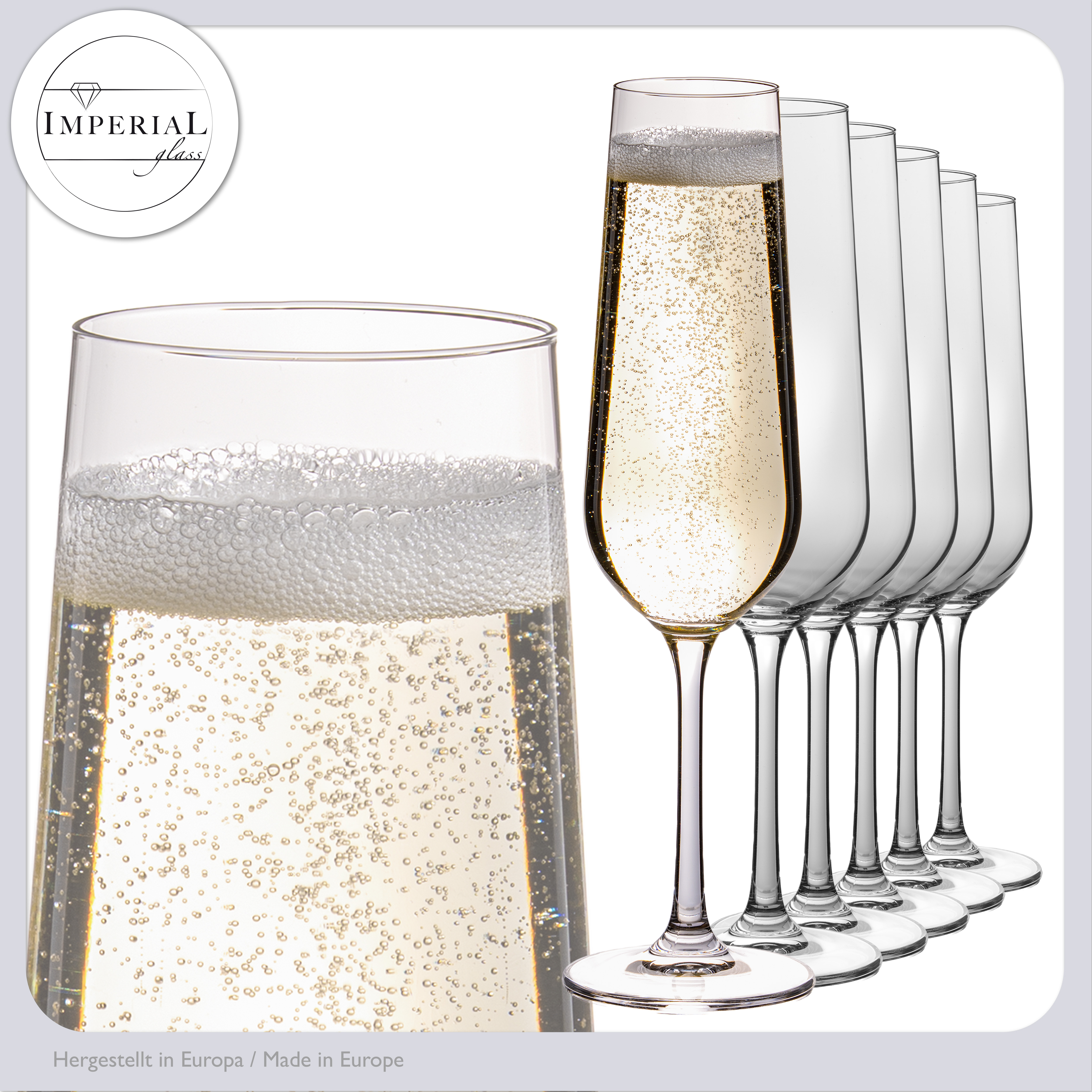 IMPERIAL Sektgläser 6er Set – schlanke Sektflöten aus Crystalline Glas 228ml "Barcelona" – spülmaschinenfest