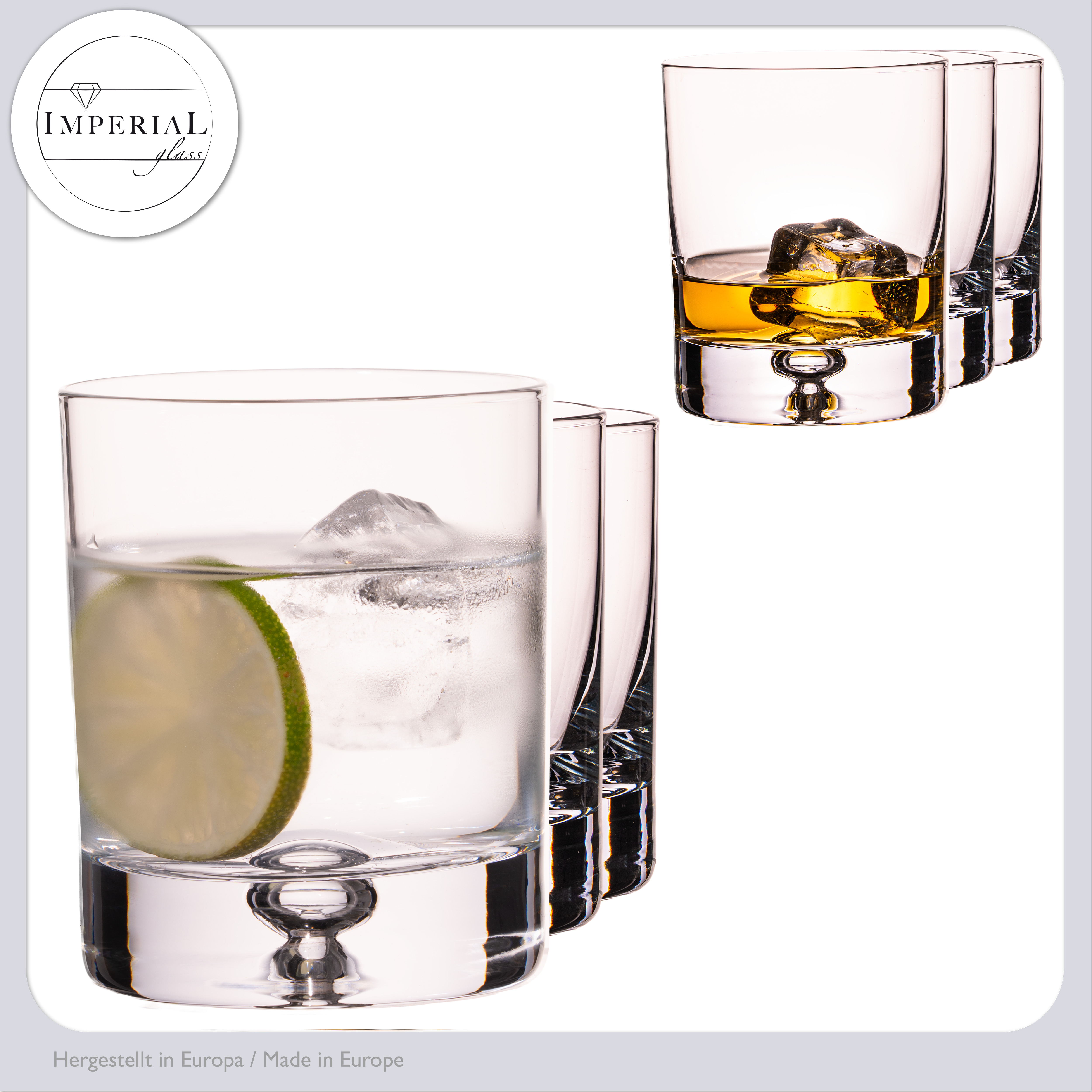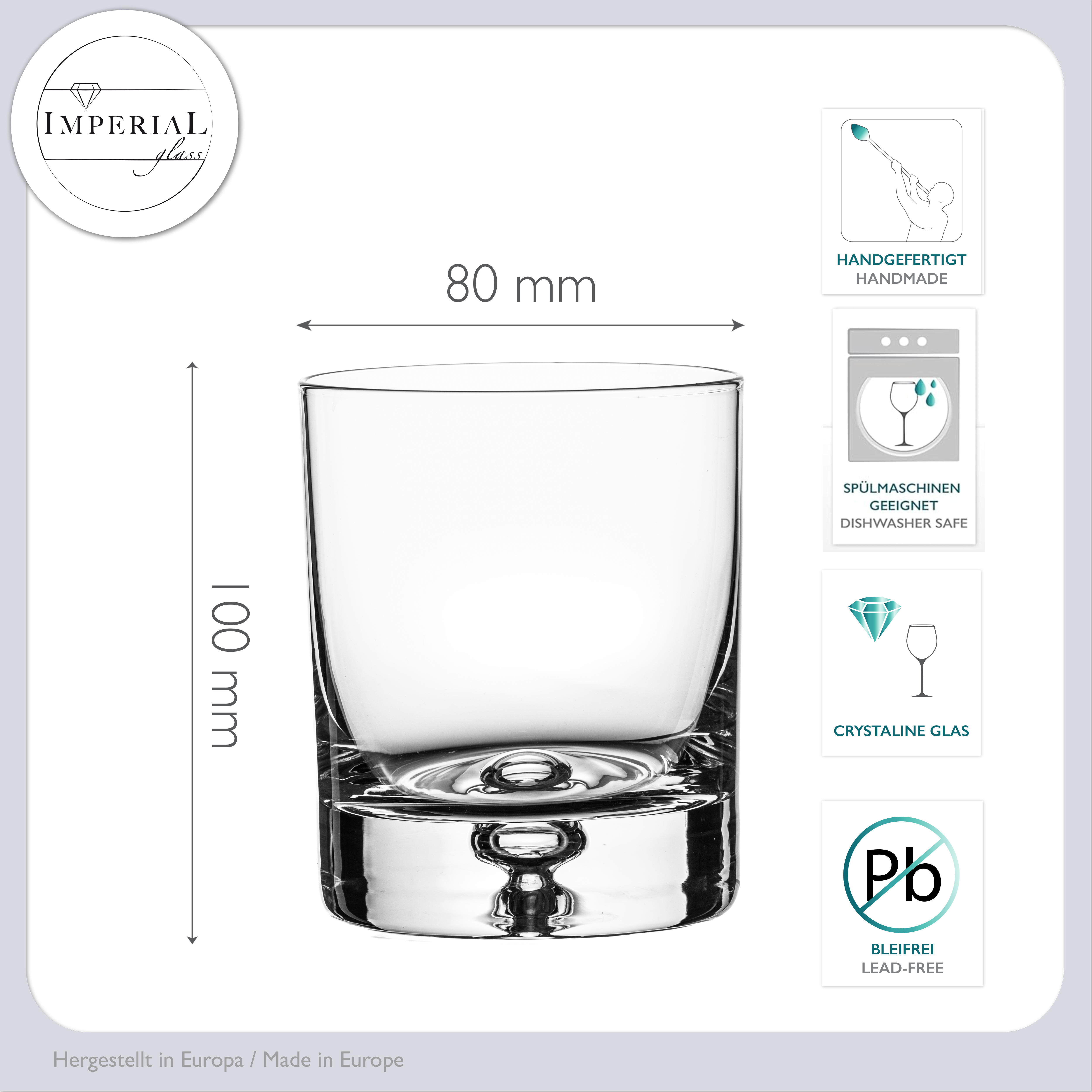 Die IMPERIAL Universalgläser vereinen klassisches Design mit handwerklicher Präzision. Jedes Wasserglas wird in Europa gefertigt und zeichnet sich durch eine dickwandige Verarbeitung und den markanten schweren Boden mit integrierter Luftblase aus. Diese Details sorgen für Stabilität, Langlebigkeit und ein hochwertiges Trinkerlebnis.