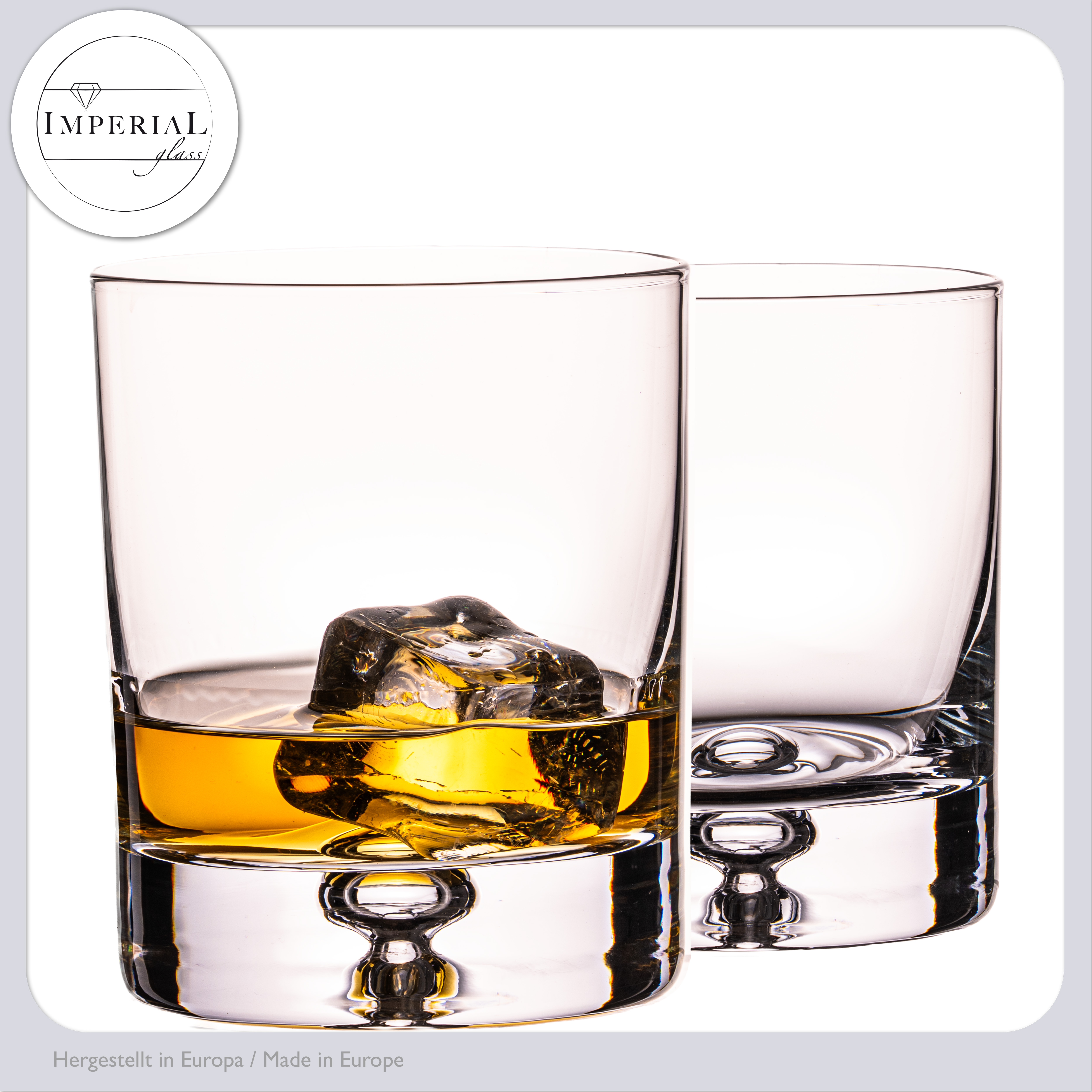IMPERIAL Whiskeyglas Set 2 Stück – 300ml Whiskygläser aus Crystalline Glas "Lissabon" – dickwandig, schwer mit Luftblase im Boden Handmade