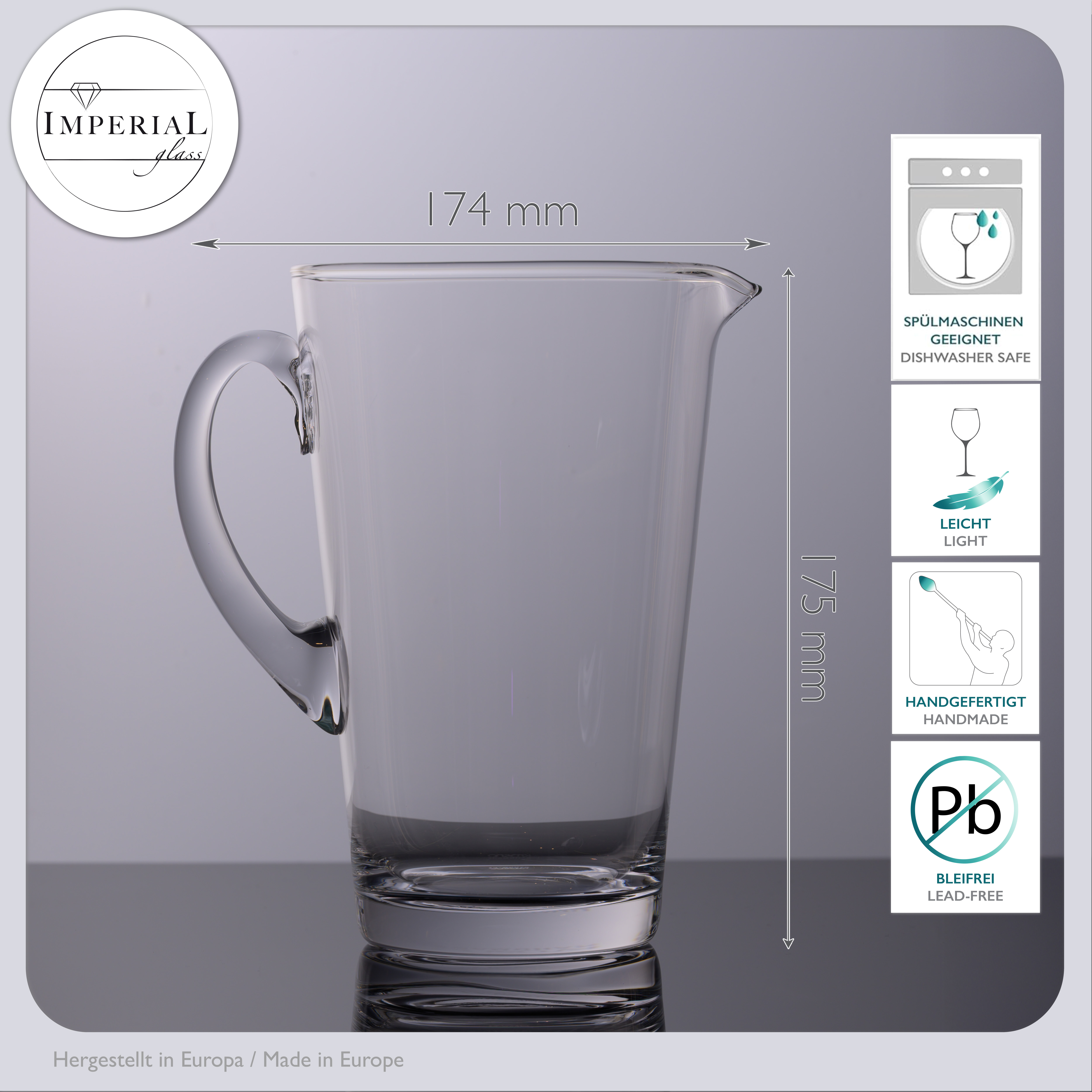 IMPERIAL Glaskaraffe 1,68L "Rom" – handgefertigte Karaffe aus Crystalline Glas mit Griff und Ausgießer