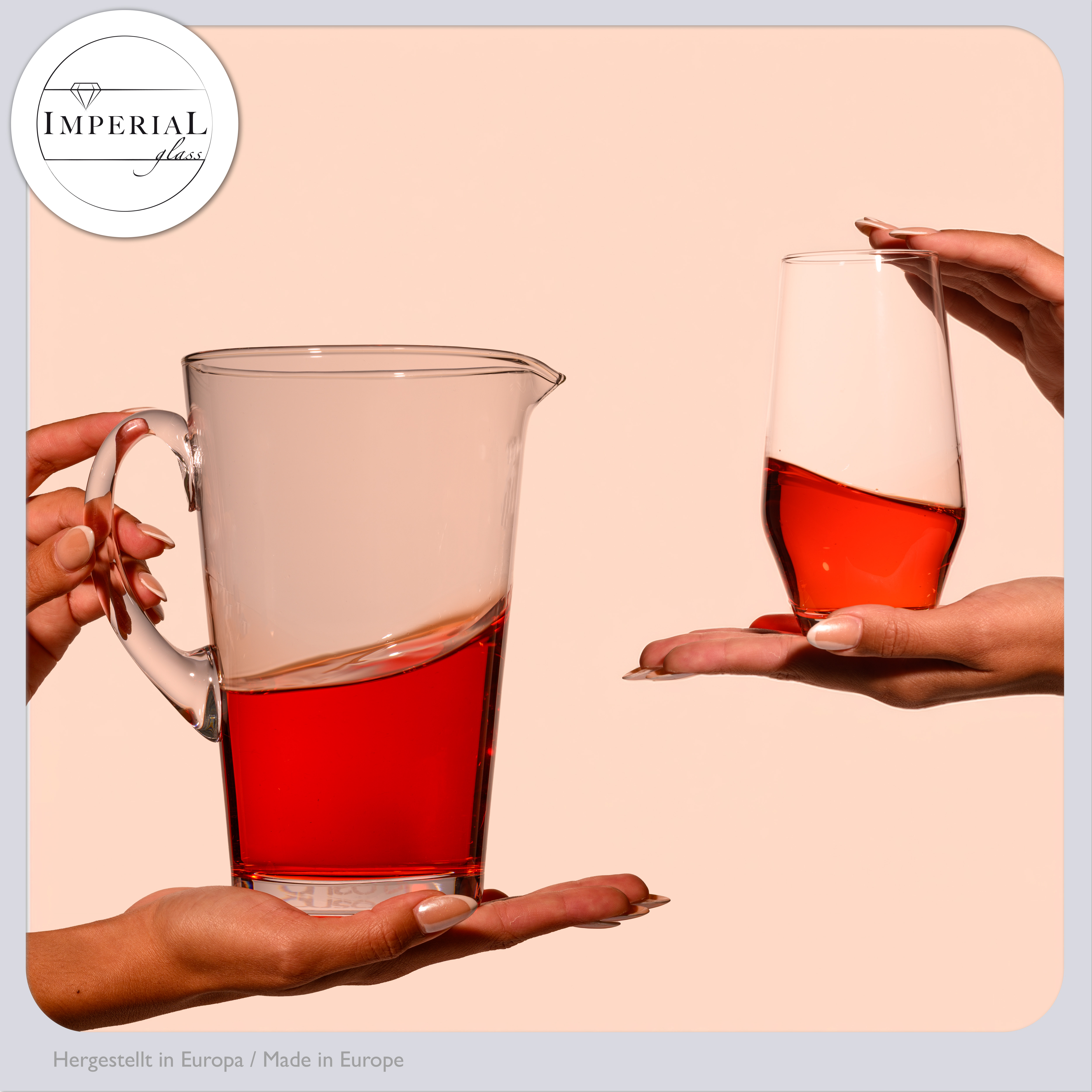 IMPERIAL Karaffe und Trinkgläser Set aus Crystalline Glas "Rom" 1 Karaffe 1680ml + 6 Gläser 520ml handgefertigt
