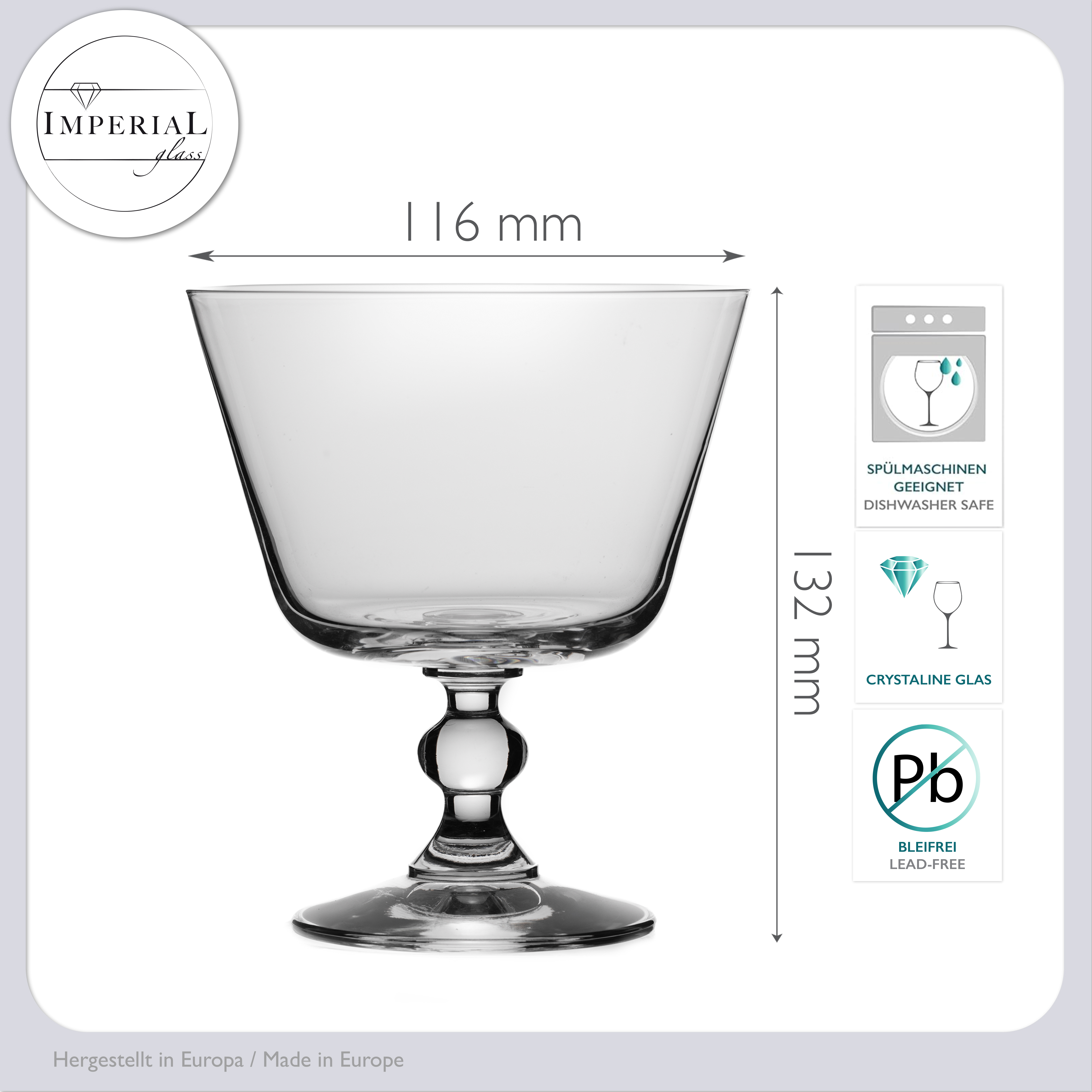 IMPERIAL Dessertschale 380ml 6er Set – Schüssel mit Fuß aus Crystalline Glas spülmaschinenfest "Vintage"