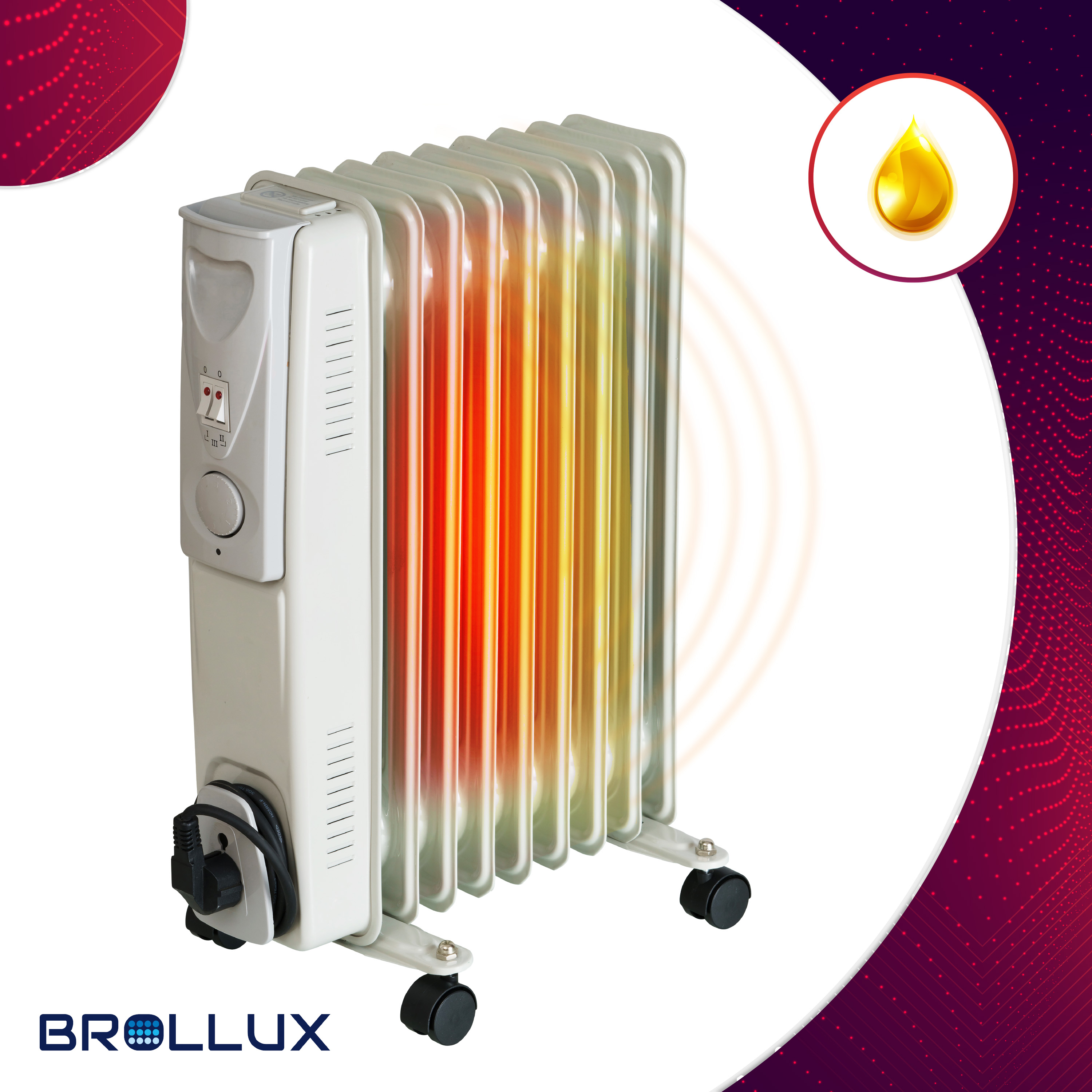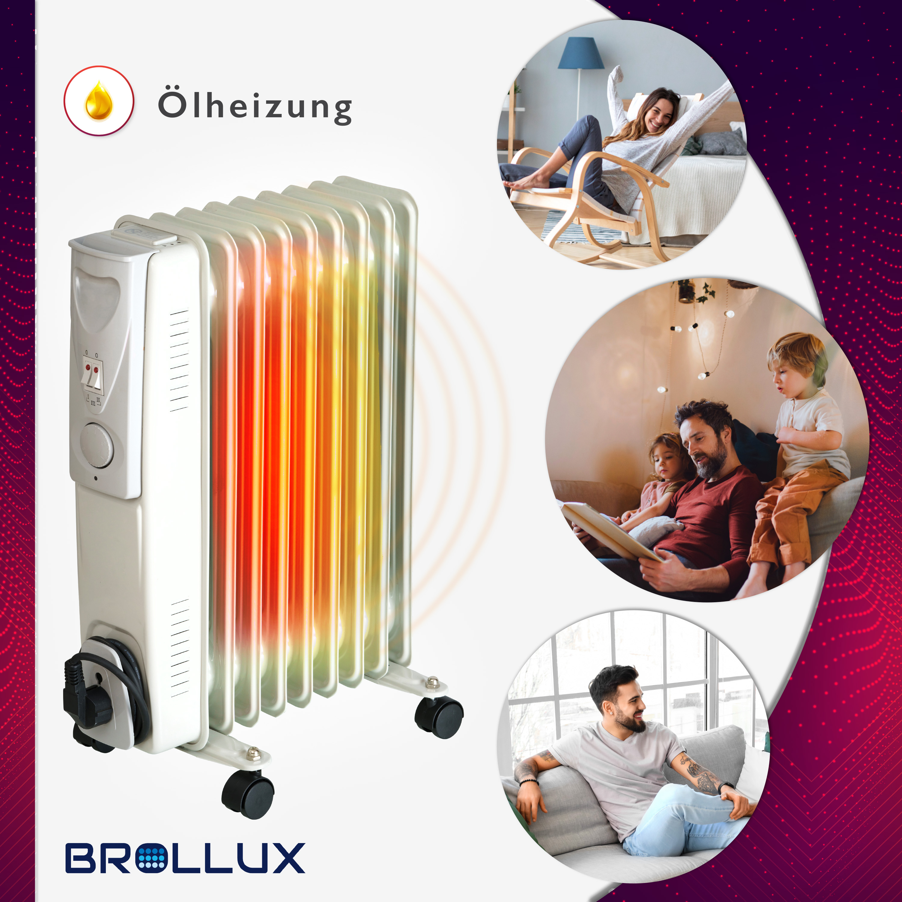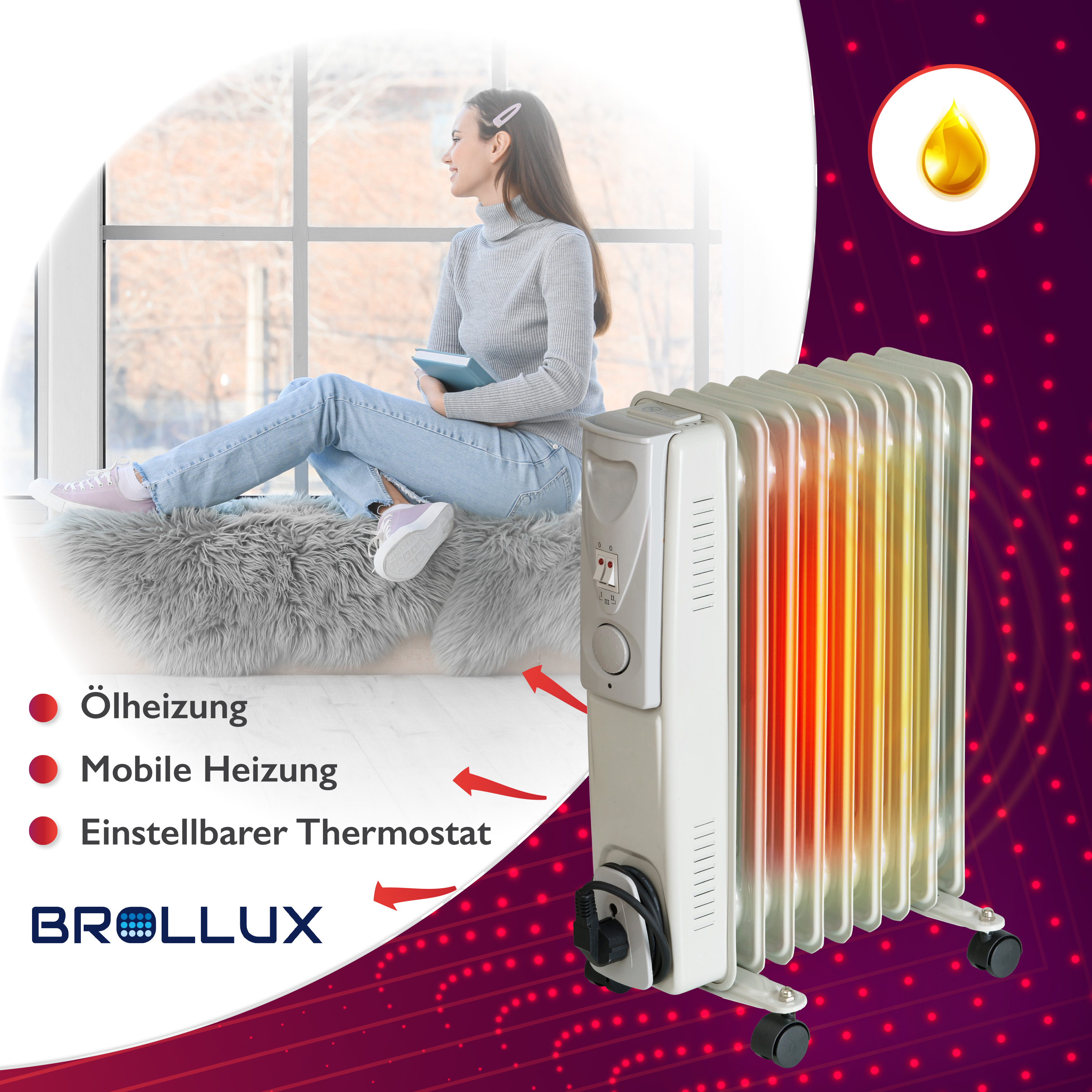 Brollux B-Ware Ölheizung elektrisch 2000W OH-09 Ölradiator Elektroheizung 9 Lamellen mobiler Elektroheizkörper Heizgerät Ölradiator Thermostat