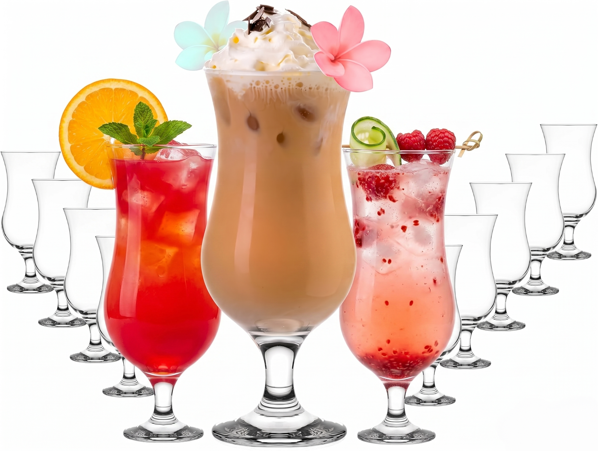 - ANWENDUNGEN: In den Bargläsern lassen sich all Ihre Lieblingsgetränke, wie Pina Colada, Daiquiri, Hurricane, Bier, Smoothies, Eiskaffee oder Milchshake servieren. Die Glaskelche sind Spülmaschinenfest und für die Mikrowelle geeignet. Auch eigenen sich die Eisgläser als Geschenkidee oder als elegantes Bierglas.