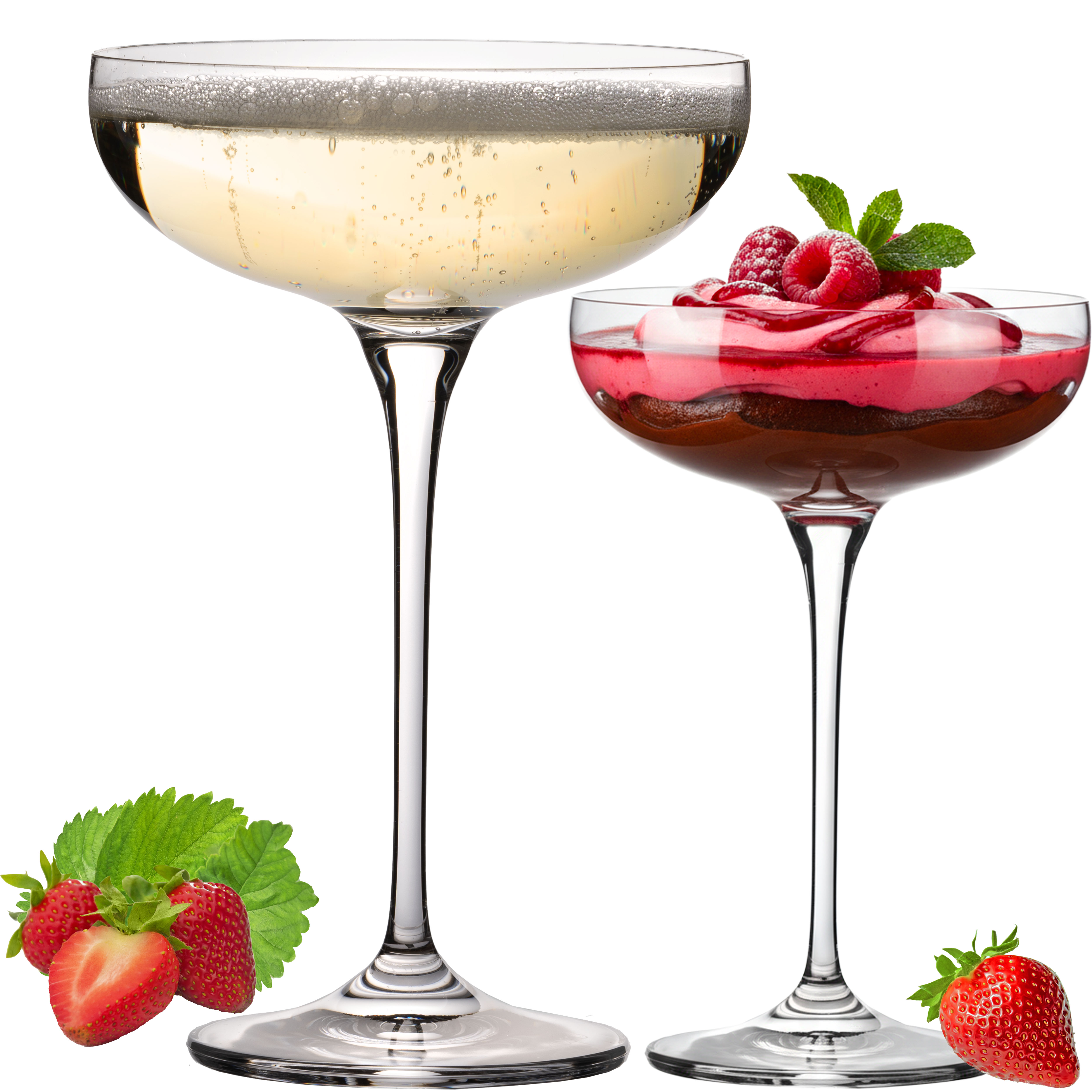 - DESIGN: Der flache und breite Glaskelch der Champagnerschalen sorgt für ein optimales Trinkerlebnis und ein 20er Jahre Vintage Erlebnis. Unsere Glaswaren werden in der EU hergestellt. Das Schaumweinglas ist sehr leicht, wodurch es angenehm zu halten ist und sich gut in der Hand anfühlt.